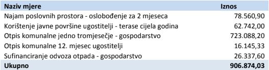 Ukupno je izdvojeno 906.874,03 kune, od čega je velika većina, 723 tisuće kuna, otišla na otpis komunalne naknade za jedno tromjesečje.