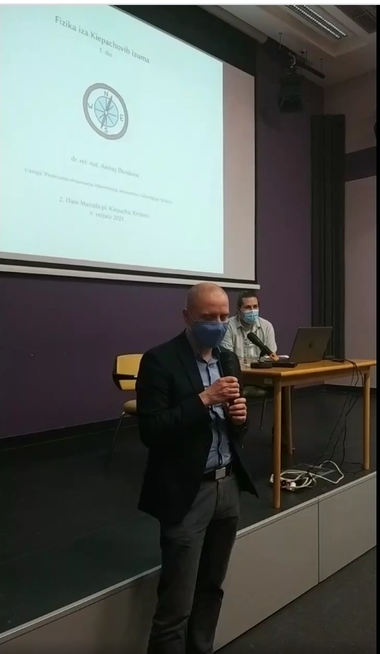 U Gradskoj knjižnici „Franjo Marković“ sinoć je dr.sc. Andrej Dundović iz udruge P.O.I.N.T. održao predavanje „Fizika iza Kiepachovih izuma“ u sklopu Dana Marcela pl. Kiepacha. Proučavao je Marcelovu ostavštinu, njegove nacrte i bilježnice koje čuva Gradski muzej u Križevcima i na ovom predavanju prezentirao je i objasnio fizikalne koncepte patenta kojeg je prijavio kao šesnaestogodišnjak 16. ožujka 1910. Kiepach je patentirao brodski kompas koji pokazuje sjever bez obzira na blizinu željeza ili magnetskih sila, a usavršio ga je i patentirao u Londonu 20. prosinca 1911. kao uređaj za daljinsko pokazivanje brodskog kompasa, koji se sastoji od ampermetara kao pokaznih instrumenata smještenih u raznim dijelovima broda, na čiji rad ne mogu utjecati magnatske sile niti magnetske mase u njihovoj blizini.