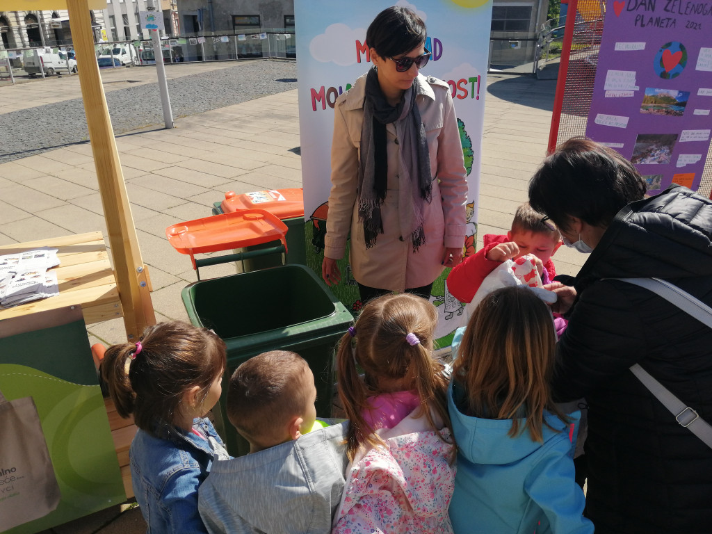“Plastika je problem na globalnoj razini. U prosjeku, svatko od nas Zemlju zagadi s 22 tisuće komada plastičnih vrećica godišnje. Plastika ne nestaje, ona se usitnjava u sve manje komadiće, tzv. mikroplastiku koja ulazi u hranidbeni lanac te pronalazi put i do naših tanjura, uništava ekosustav. Ne treba za svaku bananu uzeti plastičnu vrećicu, etiketu možete nalijepiti i na koru banane“, poručila je voditeljica Mijač Dretar koja sa suradnicama iz Komunalnog poduzeća već godinama educira vrtićance i učenike kako pravilno odlagati otpad. Posljednjih godinu dana zbog pandemije nisu ulazili u škole, ali akciji su se pridružili učenici 4.a razreda iz OŠ Ljudevita Modeca koji su s učiteljicom Natašom Marković izradili edukativne plakate.