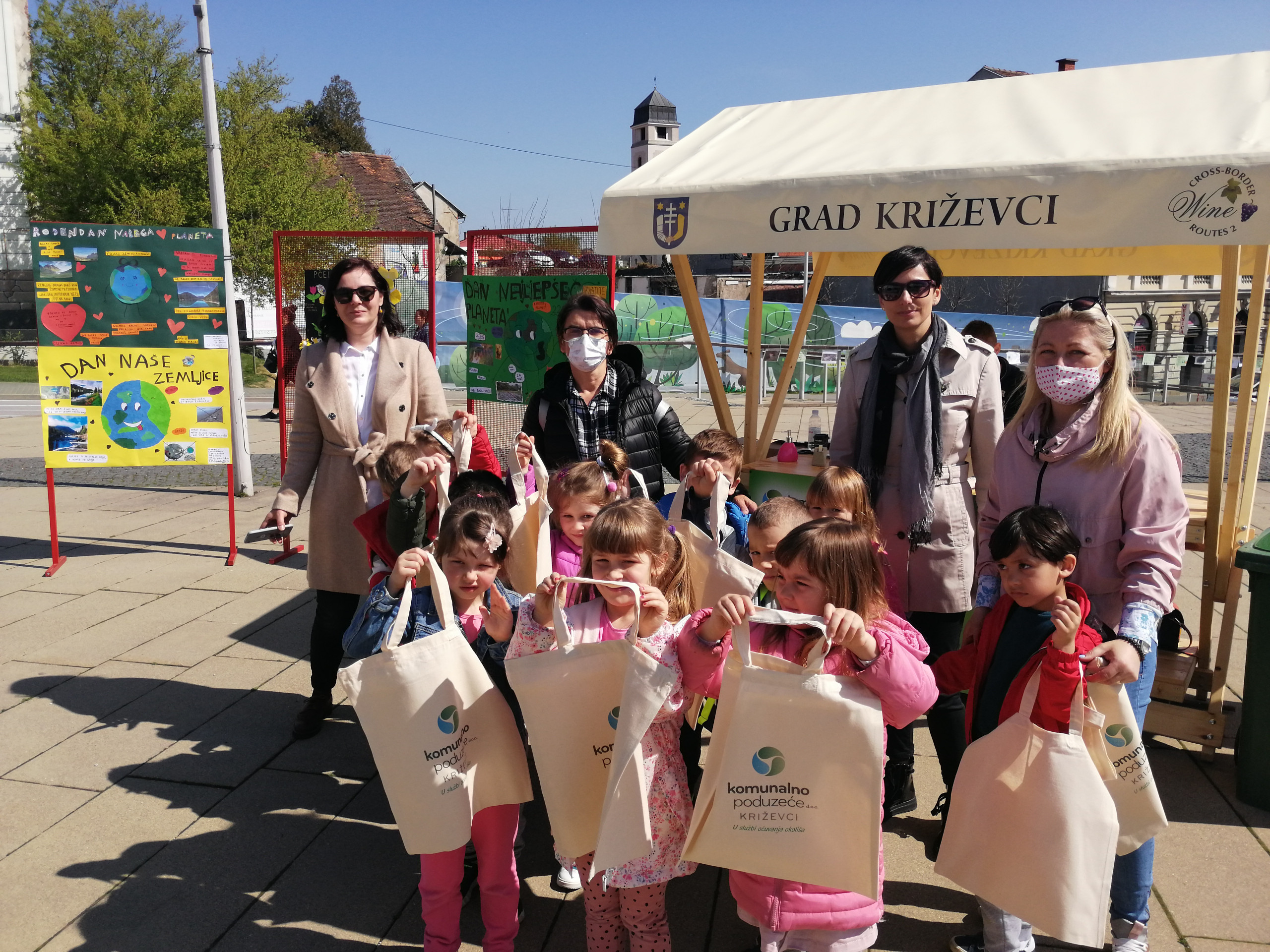 Da se zdrave navike stječu od malih nogu, pokazali su klinci iz skupine Kikići iz Dječjeg vrtića Križevci koji su sa svojim odgojiteljicama predali punu vreću plastičnih i preuzeli nove platnene vrećice.