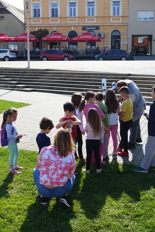 Promatranje je održano u poslijepodnevnim satima na Strossmayerovom trgu, a građani su mogli vidjeti pojave na Suncu kao što su sunčeve baklje, protuberancije i pjege.