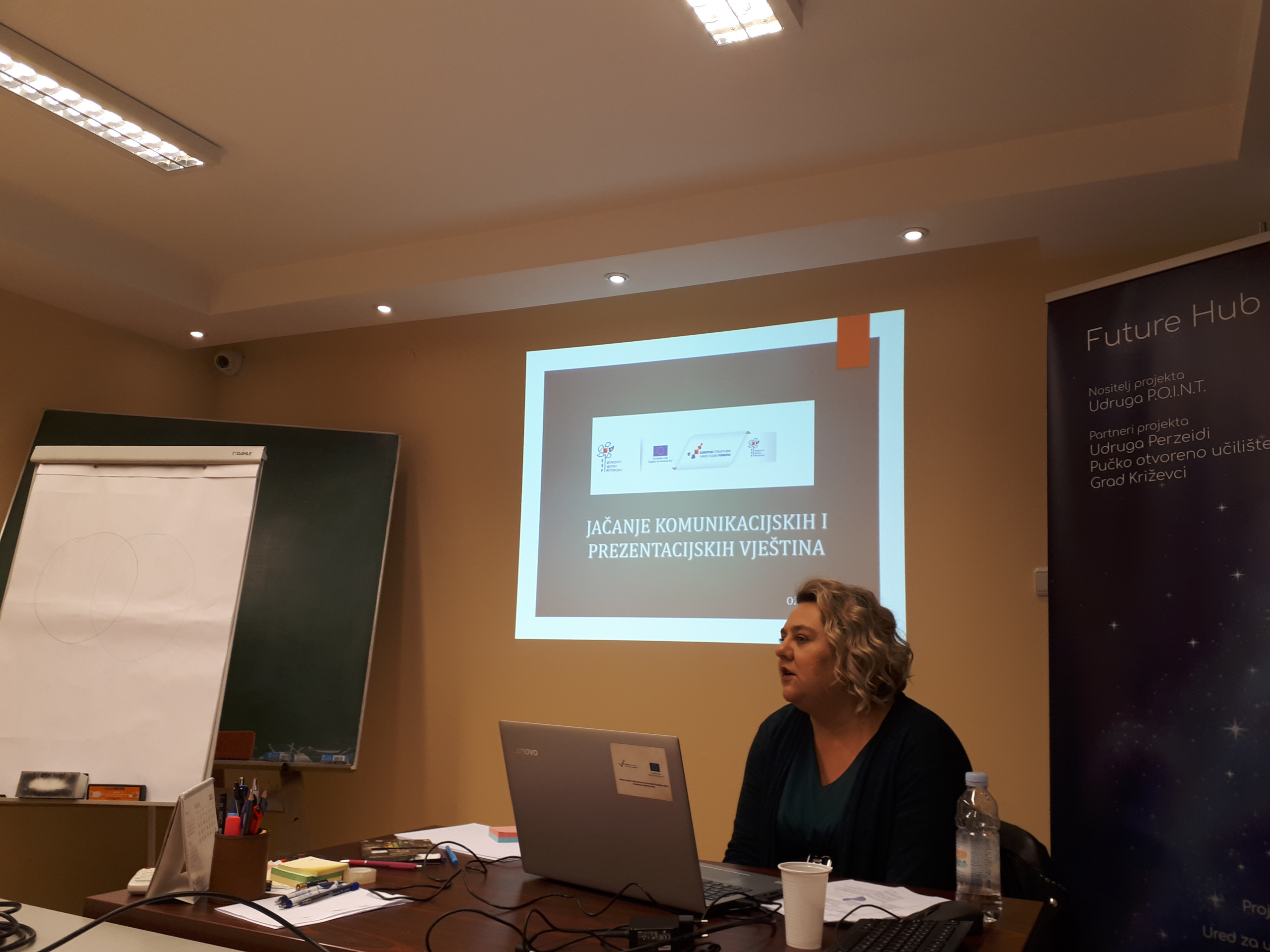 Na Future Hubu održana je prva od predviđenih 12 dvodnevnih radionica socijalnih vještina, a tema je bila Jačanje komunikacijskih i prezentacijskih vještina. Radionica je privukla brojan interes te je 12 polaznika kroz šest školskih sati raspoređenih na dva dana moglo naučiti nešto o spomenutim temama.