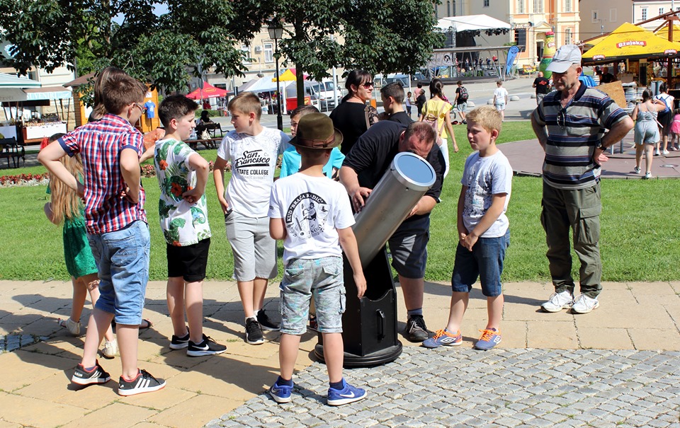 Nakon pauze dulje od dvije godine (zbog poznatih razloga) Križevačka astronomska udruga dobila je opet priliku da se pojavi na Križevačkom velikom spravišču sa svojom opremom za promatranje nebeskih fenomena. Teleskopi će biti postavljeni na Trgu Antuna Nemčića u Križevcima, pored Nemčićeve biste, u subotu, 4. rujna između 13 i 16 sati gdje će biti upriličeno promatranje Sunca (naravno, besplatno) za sve posjetitelje. Sunce će se promatrati s dva teleskopa preko dvije vrste filtera. Jedan teleskop će biti opremljen posebnim H-alpha filterom kojim se mogu promatrati pojave na Suncu, to jest u njegovoj atmosferi (poput prominencija) koje ne možemo vidjeti nikako drugačije. Nakon duljeg vremena konačno na Suncu možemo vidjeti bar dvije ako ne i tri grupe pjega. Istog dana navečer na terenu bivše vojarne, na livadi iza Tehnološkog parka, gdje je nešto manja gradska rasvjeta, od 20 do 22 sata, pa možda i dulje ako bude zainteresiranih, bit će organizirano promatranje teleskopima Venere, Saturna s prstenovima i Jupitera s njegovim satelitima, te nekih zanimljivosti dubokog svemira za koje postoji mogućnost da se vide s obzirom na stupanj svjetlosnog onečišćenja. Dobro došli!