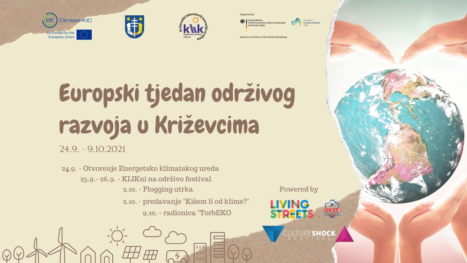 Aktivnosti u sklopu Europskog tjedna održivog razvoja organizira KLIK energetska zadruga u partnerstvu sa Gradom Križevcima, a pod pokroviteljstvom Culture Shock festivala i EUKI Living Streets projekta te EIT Climate-KIC inicijative “Gradovi budućnosti jugoistočne Europe”.