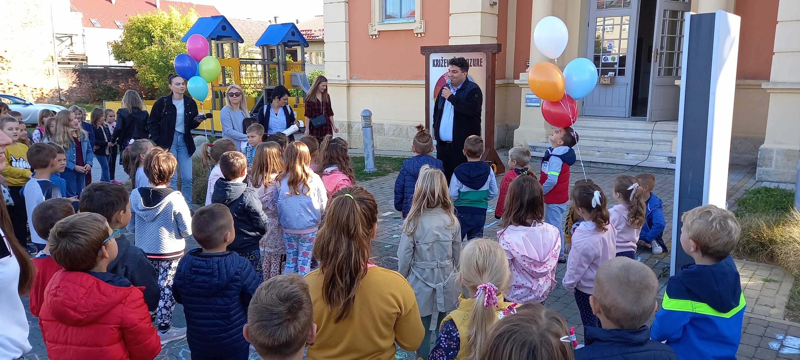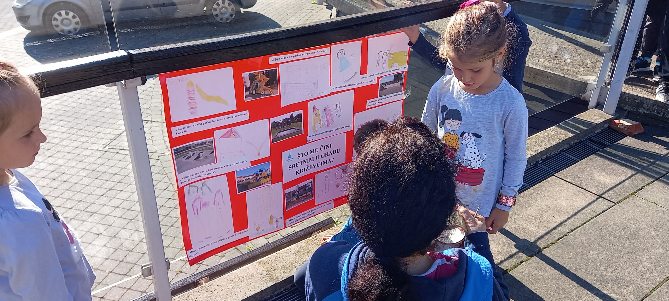 Učenici križevačkih osnovnih škola i vrtićanci iz sva četiri vrtića, otvorili su jučer s gradonačelnikom Marijom Rajnom Dječji tjedan uz moto “Ljubav djeci prije svega”. Kredama su iscrtali pločnik na Strossmayerovom trgu, a svoje poruke i želje zalijepili su po paviljon i ogradi oko njega.