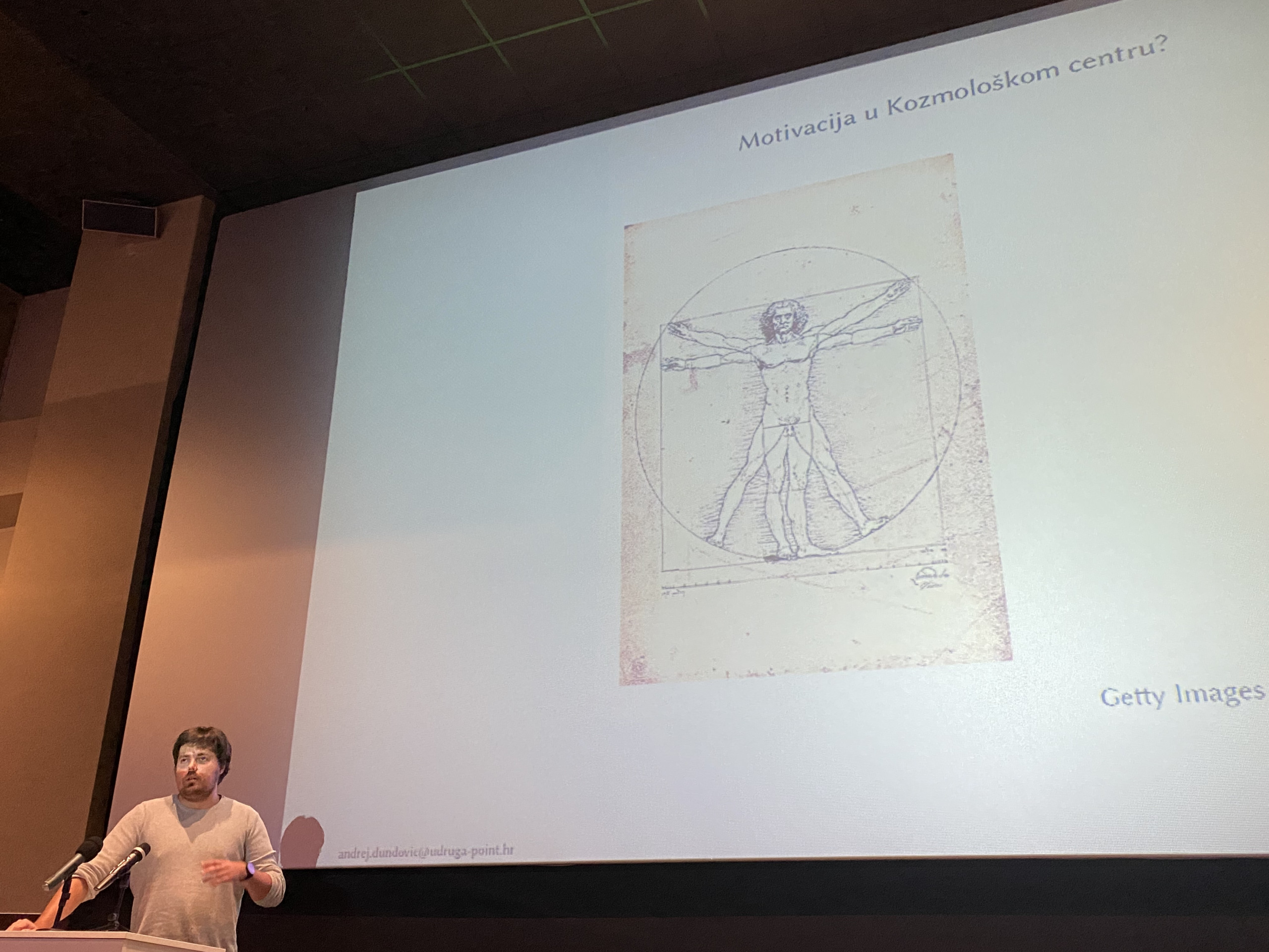 Pozvano predavanje “O motivaciji učenika na primjeru prirodoslovnih, matematičkih i tehničkih područja” održao je dr. nat. rer. Andrej Dundović, voditelj EU projekata Future Hub Križevci i SPARK – “Sinergija prirodoslovaca, astronoma, računaraca Križevaca” u udruzi P.O.I.N.T. Dundović je doktorirao teorijsku fiziku na Sveučilištu u Hamburgu, usavršavao se na Znanstvenom institutu Gran Sasso u L’Aquili, a trenutno, kroz navedena dva EU projekta, vodi inicijativu za uspostavu Kozmološkog centra – novog znanstveno-obrazovnog centra sa sjedištem u Križevcima kojem je cilj istraživanje, obrazovanje i popularizacija znanosti sa središnjom temom Svemira.