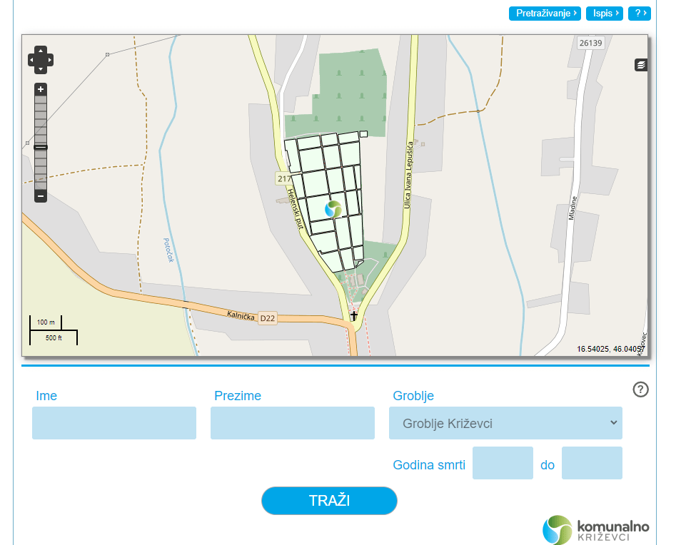 Potrebno je mobitelom skenirati QR kod koji se nalazi na tablama na groblju te u tražilici upisati ime pokojnika čiju grobnicu želite pronaći. Moguće je pretraživanje i po godini smrti – primjerice u 1981. godini na križevačkom groblju pokopane su 43 osobe i odabirom bilo koga od njih, na ekranu će se pokazati kartografski prikaz parcela i oznaka grobnog mjesta na kojem se nalazi pokojnik. Osim preko QR koda, tražilici pokojnika može se pristupiti i preko stranice https://www.axiomgis.com/Krizevci