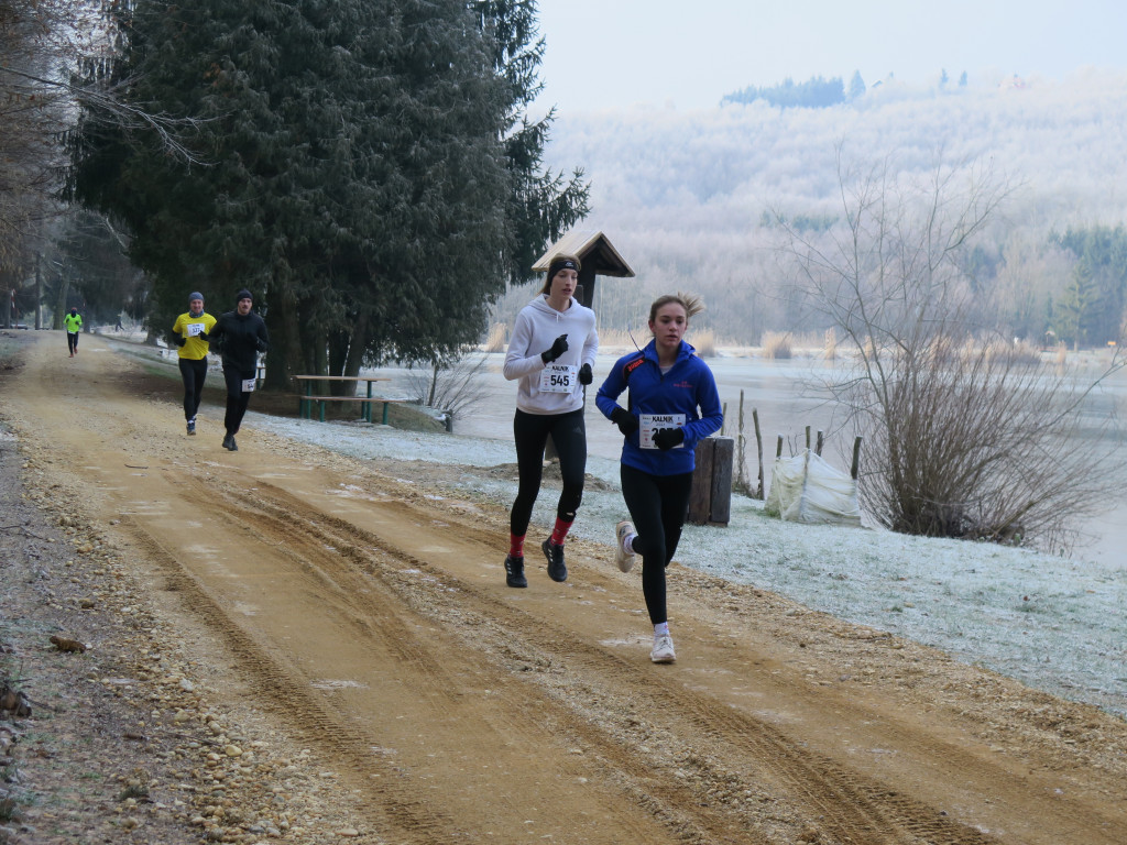 Na debelom minusu uz zaleđeno jezero Čabraji, jučer je odrađeno 4. kolo Križevačke kros lige i to uz najviše trkača dosad koji su se natjecali u svim disciplinama. Čak 41 natjecatelj iz Križevaca, Čakovca, Koprivnice, Vrbovca, Kutine i Zagreba, među kojima 19 trkačica, 20 trkača, jedna hodačica i jedan četveronožni trkač, savladali su dionicu od 4 km po novouređenoj poučnoj stazi. Trčalo se po svim vrstama podloga – komadić asfalta, makadam, šumski put, zaleđena zemlja uz vodu, daščana staza, preskakali su se trupci, a četveronožni Boško probao je i po zaleđenom jezeru. Doduše led je bio pretanak pa je taj pokušaj završio plivanjem. Srećom, nitko od dvonožnih trkača nije se okupao iako je na dijelu staze trebalo preskočiti vodu.