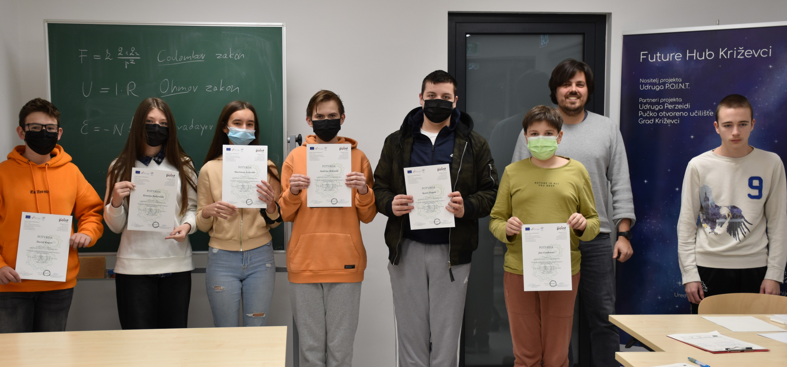 Učenici viših razreda osnovne škole, njih dvanaest, uspješno su završili program pod nazivom Osnove elektrotehnike kroz praksu i eksperimente u sklopu projekta Future Hub Križevci i zaslužili svoje certifikate. Na radionicama automatizacije, robotike i elektrotehnike, uz pomoć dr. rer. nat. Andreja Dundovića, od rujna su svaki tjedan marljivo proučavali električne i magnetske pojave, istraživali mogućnost dobivanja struje iz limuna i druge zanimljivosti.