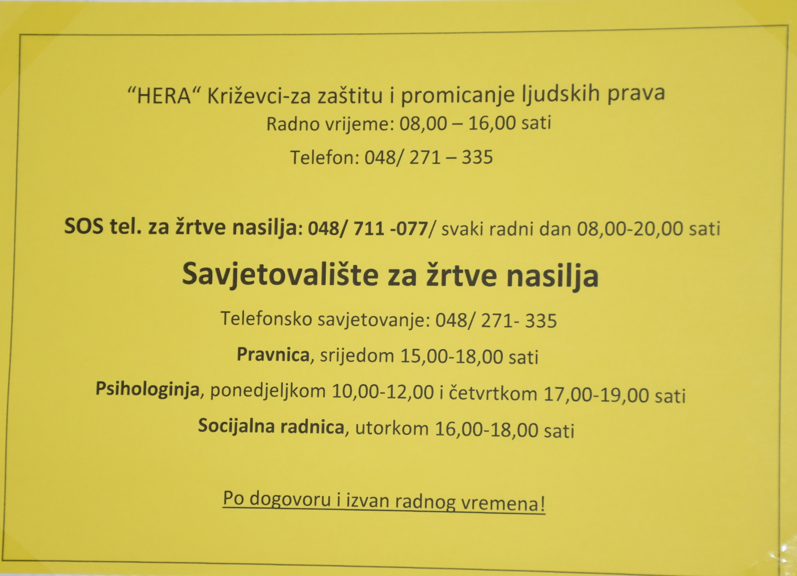 Križevci su drugi grad u Hrvatskoj koji je donio Strategiju zaštite od nasilja u obitelji i time poslao poruku da želi biti sredina koja ne tolerira nasilje. Ovaj dokument obvezuje lokalnu samoupravu da izradi propise za provedbu mjera iz svoje nadležnosti i uvrsti ih u godišnje planove i proračune, a gradski vijećnici su ga usvojili na 5. sjednici Gradskog vijeća krajem prošle godine. Cilj je osigurati veći stupanj zaštite žrtava i podići kvalitetu njihova života, ali i senzibilizirati građane Križevaca na problematiku obiteljskog nasilja. Zajednički su je, sklopu programa Nisi sama, izradili Udruga HERA, Grad Križevci, Centar za socijalnu skrb te druge organizacije civilnog društva i stručnjaci raznih profila.
