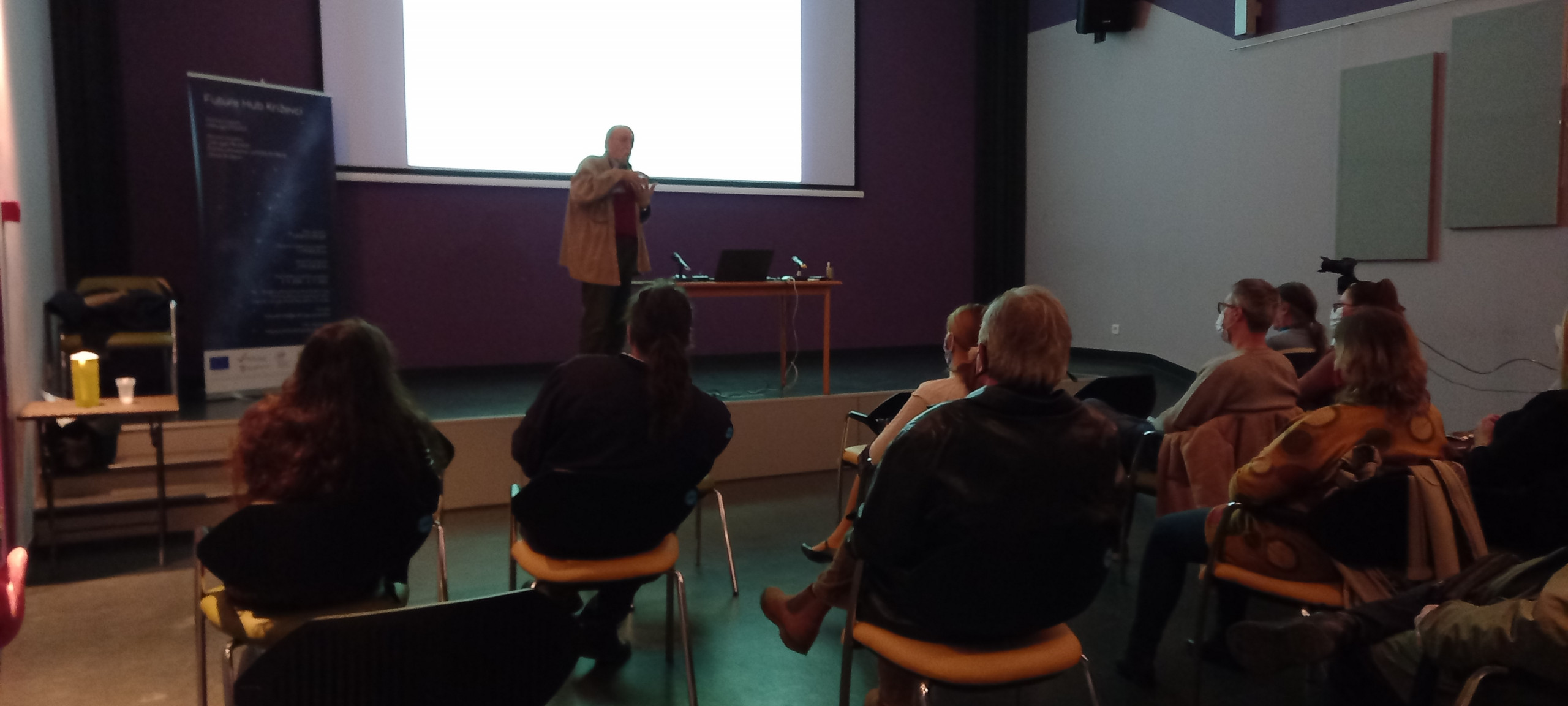 U Temi Krugova počinjemo preslušavati predavanje profesora dr. sc. Dubravka Horvata Kako najbrže putovati kroz prostorvrijeme koje je održano 28. listopada prošle godine navečer u Multimedijskoj dvorani Gradske knjižnice “Franjo Marković”. Bilo je to znanstveno-popularno predavanje za sve zainteresirane građane.