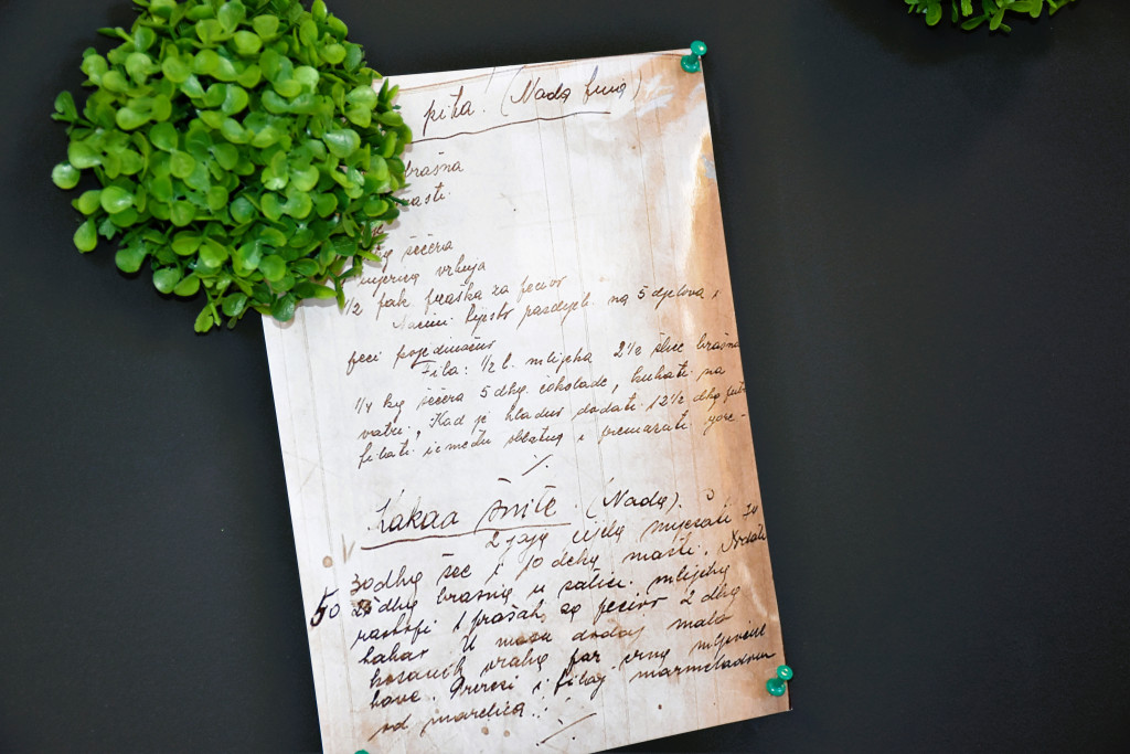 Police i zidovi njihove slastičarnice puni su starih recepata križevačkih gazdarica u koje “škicnu” i danas. Svaka od njih specijalizirala se za neki dio slastičarstva pa je tako Marijana majstorica za torte, klasične kolače, mijesi kore i radi bijele pite i mađarice, dok Nikolina voli modernije slatkiše poput tarteva i pralina. Ipak, svaki kolač koji izađe iz njihove kuhinje, zajednički je proizvod. “Zajedno radimo na novim kolačima i tortama. Isprobavamo okuse, ako nam nije fino onda isprobavamo dalje. Krećemo od sebe, ako nama nije ukusno, nema šanse da ćemo kolač prema takvom receptu pustiti van. To su uvijek pregovori, jednoj se možda sviđa više vanilije, druga bi htjela manje cimeta, no uvijek se dogovorimo i napravimo najbolji kolač“, kažu Nina i Nana, kako jedna drugu zovu.