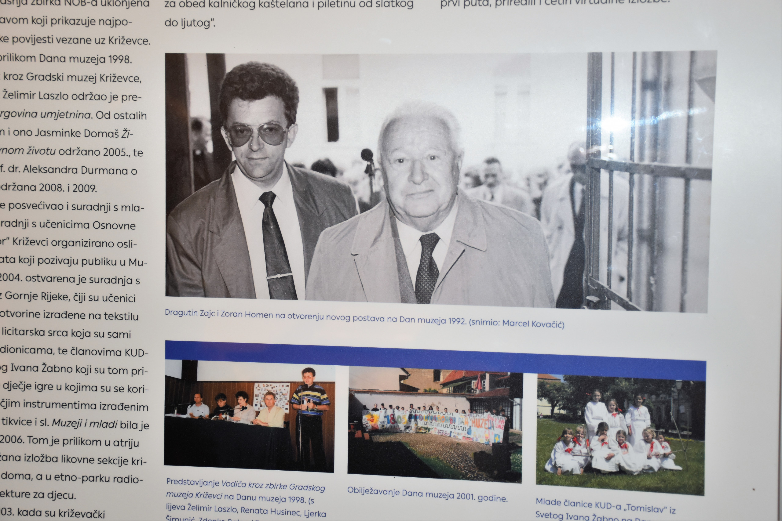 Dugogodišnji ravnatelj muzeja Zoran Homen prisjetio se svojih prethodnika Vladimira Srimšeka i Dragutina Zajca, obnove Gradskog muzeja i Likovne galerije, nabave prvog računala i prvog profesionalnog fotoaparata i većih izložbi. “Čestitke za ovaj lijepi jubilej. Našim kolegama koji su sada aktivni u radu u muzeju zahvaljujem na svemu ovome što rade i da nastave kao što su to s onim entuzijazmom radili oni prije nas. Sretan rođendan“, poručio je Homen. Brojnu publiku pozdravio je i župan Darko Koren, a izložbu je otvorio dogradonačelnik Danijel Šaško. “Nadam se da ćemo dostići one brojke od 10 tisuća posjetitelja u jednoj godini, kako je to bilo nekad. Grad već neko vrijeme s Gradskim muzejom radi na tome da pripremimo dokumentaciju za novi muzej u Županijskoj palači, sadašnjoj Gradskoj upravi. Nadam se da ćemo u idućih nekoliko godina to uspjeti ostvariti“, rekao je Šaško.