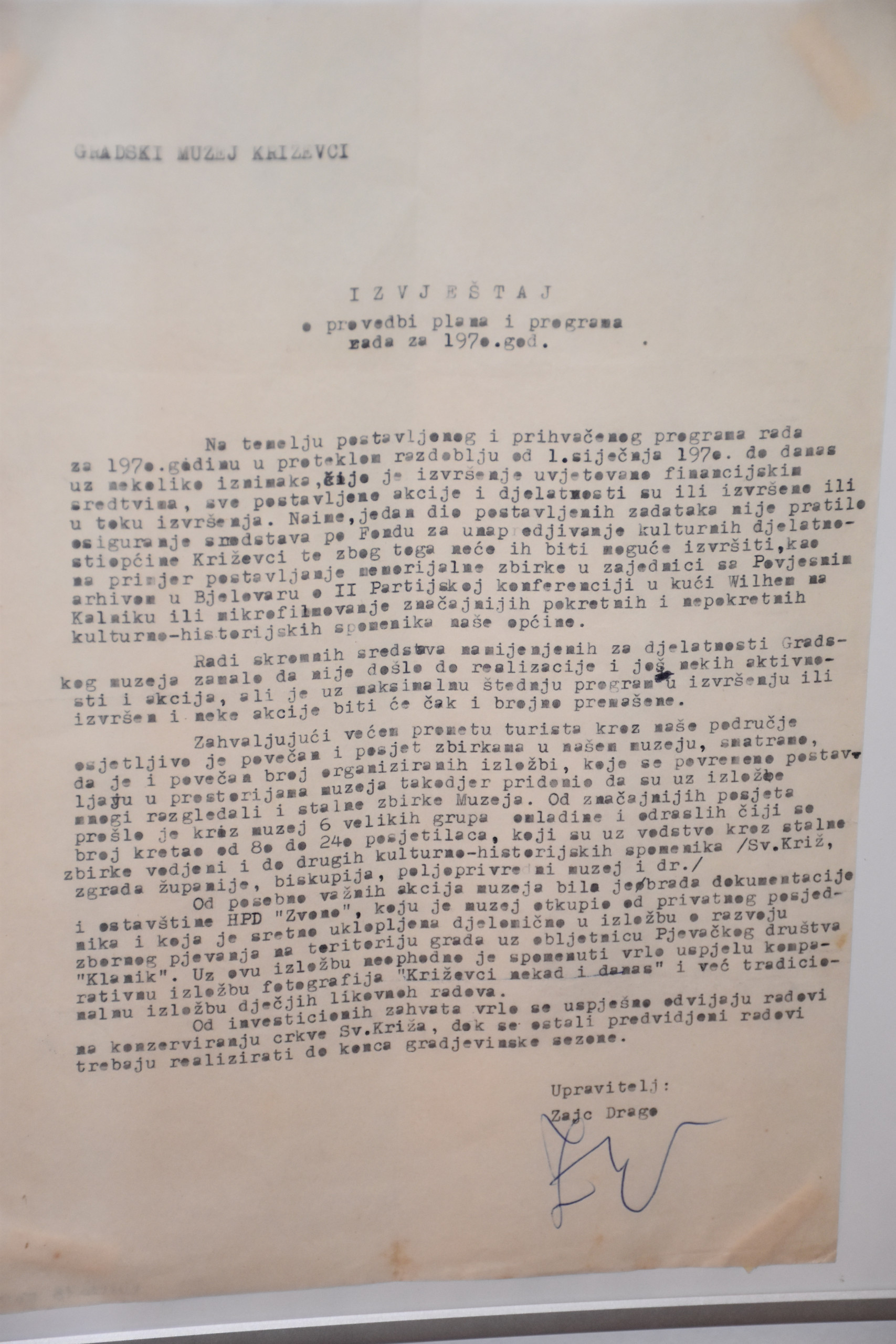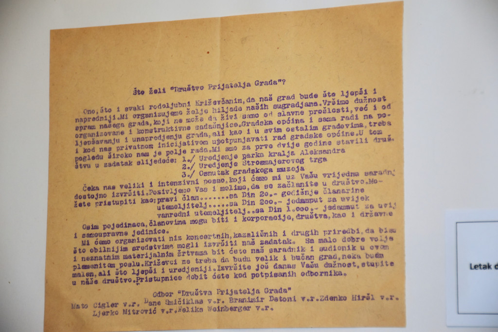 “Drugovi i drugarice, osobita mi je čast da kao tajnik ovog starodrevnog grada koji je poznat u našoj povijesti, otvorim ovu kulturno-historijsku izložbu“, riječi su kojima je Ozren Blagec, autor izložbe o 70 godina Gradskog muzeja Križevci, jučer u Likovnoj galeriji započeo svoj osvrt na osnivanje i razvoj muzeja, a istim riječima je tajnik Općine Križevci Antun Pavelić 6. ožujka 1952. u nekadašnjem Domu kulture, otvorio prvu izložbu koja se smatra začetkom Gradskog muzeja Križevci. U 70 godina čuvanja križevačke povijesti, prikupilo se mnoštvo materijala, eksponata, dokumenata, a današnji zaposlenici muzeja žele isto što je želio i prvi kustos Dragutin Zajc – novi i veći prostor.