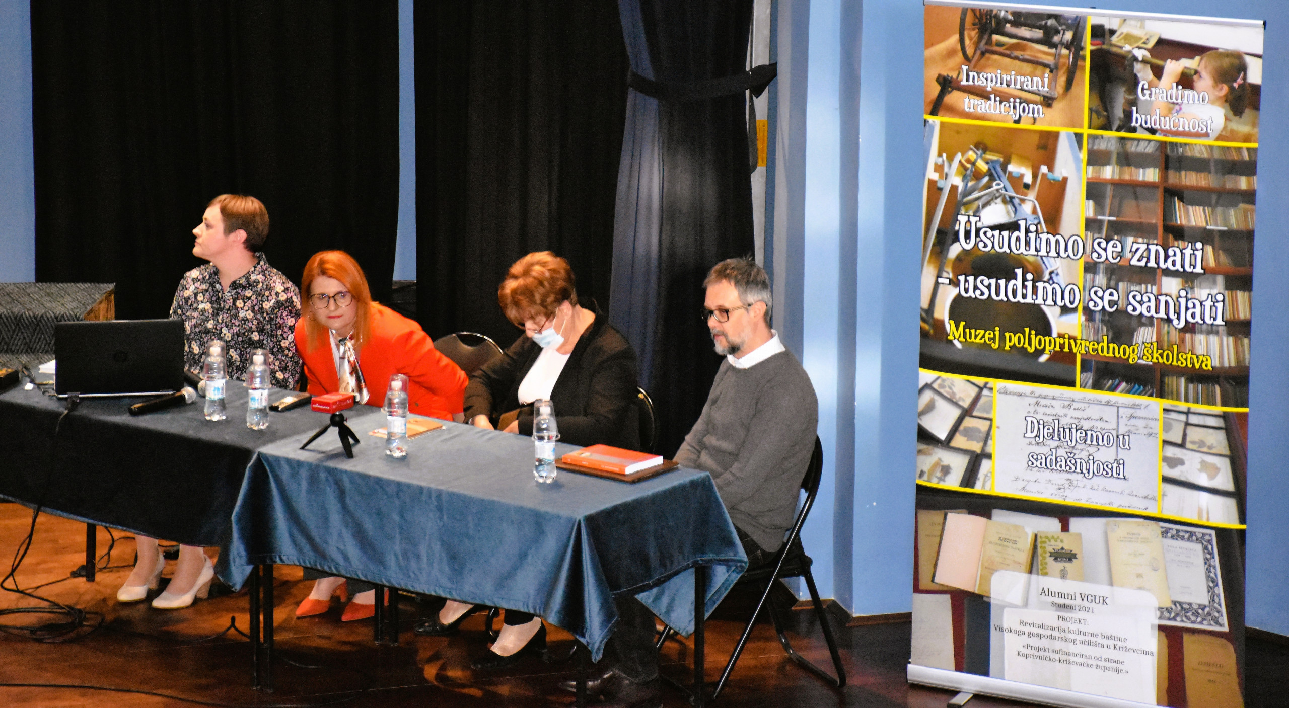 Udruga bivših studenata Visokog gospodarskog učilišta u Križevcima predstavila je u četvrtak projekt pod nazivom Revitalizacija kulturne baštine Visokoga gospodarskog učilišta u Križevcima na kojem je radila prošle godine uz pomoć umirovljene nastavnice Renate Husinec, višeg kustosa Gradskog muzeja Ozrena Blageca i knjižničarke VGUK Marine Vidović Krušić.