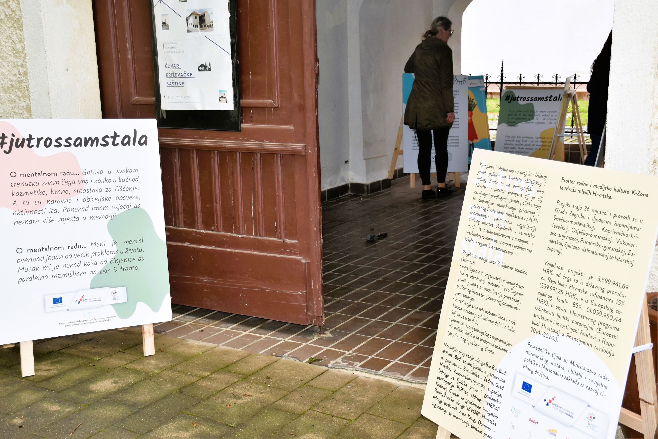 Jučer je u Križevcima na jedan dan gostovala izložba “Jutros sam stala” kojom se želi osvijestiti javnost o svakodnevnom neplaćenom kućanskom radu koji se smatra “ženskim”. Izložba je putujućeg karaktera, dosad je bila postavljena u Rijeci, Poreču, Splitu i Zadru, a iz Križevaca je otputovala u Osijek. U svim gradovima priča je ista – na velikim panoima izložene su autentične priče koje su prikupljene kroz fokus grupe i otvorile pitanje što bi se dogodilo da žene na trenutak jednostavno prestanu obavljati kućanske poslove.