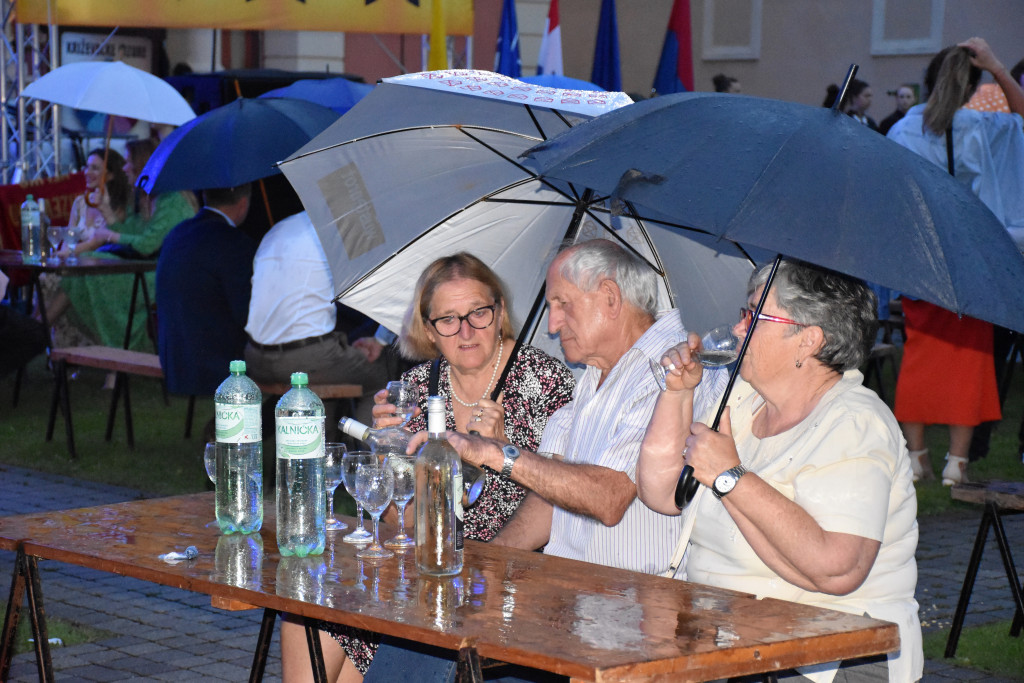 Taman kad je krenula svečana povorka od hotela prema velikoj pozornici, počela je i kiša, no program je nastavljen i križevački purgeri i kalnički šljivari pomirili su se po 54. put, a gradonačelnik Mario Rajn na tri je dana predao ključ grada zamjeniku varoškog suca. Slavlje je nastavljeno uz vatromet i koncert Hari Mata Harija.
