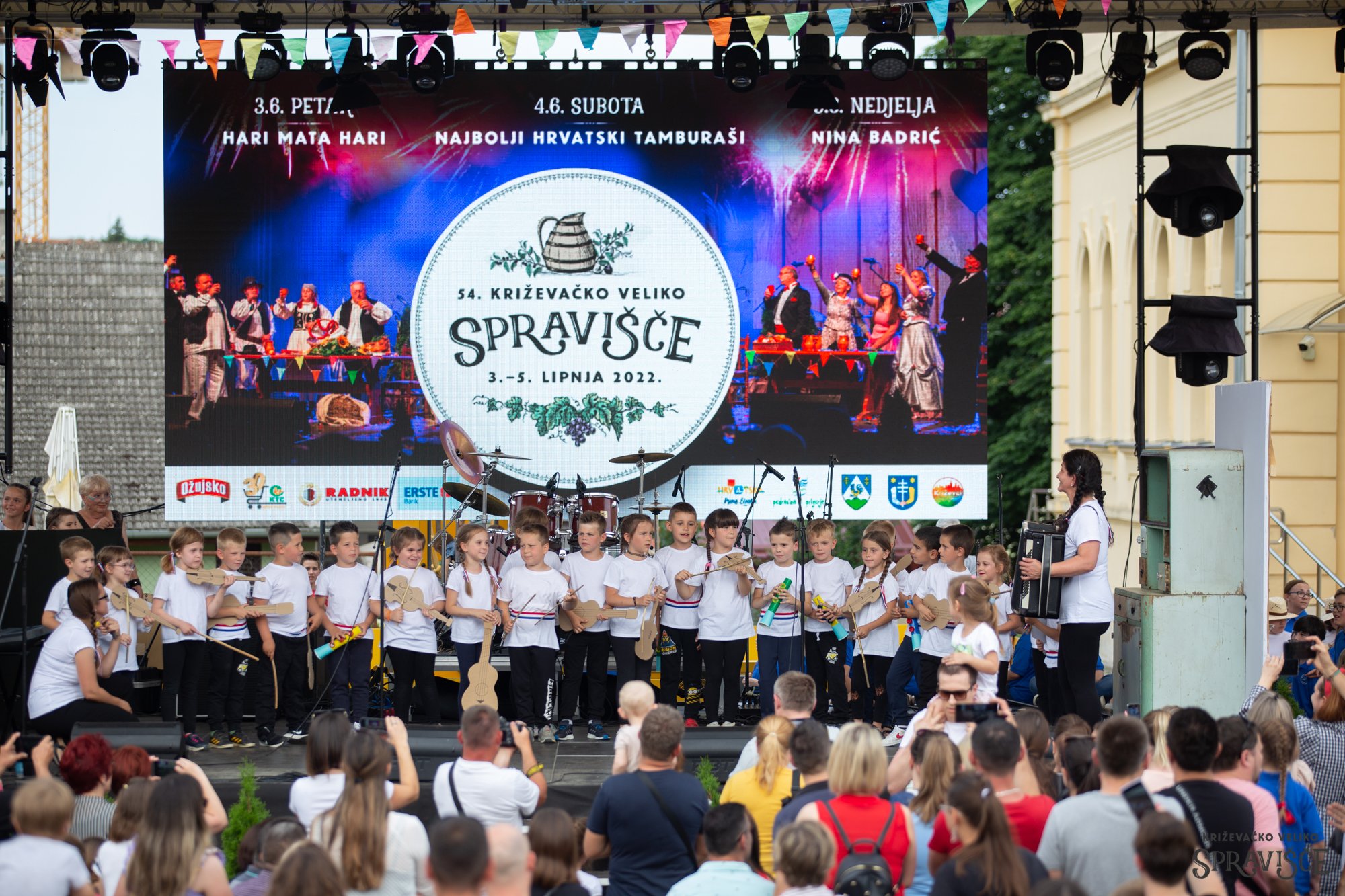 Predajom ključa grada, uz ljetni pljusak, sinoć je i službeno otvoreno 54. Križevačko veliko spravišče. Program je počeo još popodne Malim spraviščem nastupima djece, a nakon toga su polaznici Glazbene škole Alberta Štrige s prozora škole i ispred nje izvodili poznate skladbe. KUD Prigorje je u paviljonu na Strossu predstavio izvorne pjesme i plesove križevačkog Prigorja, a nastup su začinili mali folkloraši Područne škole Glogovnica u narodnim nošnjama svoga sela.