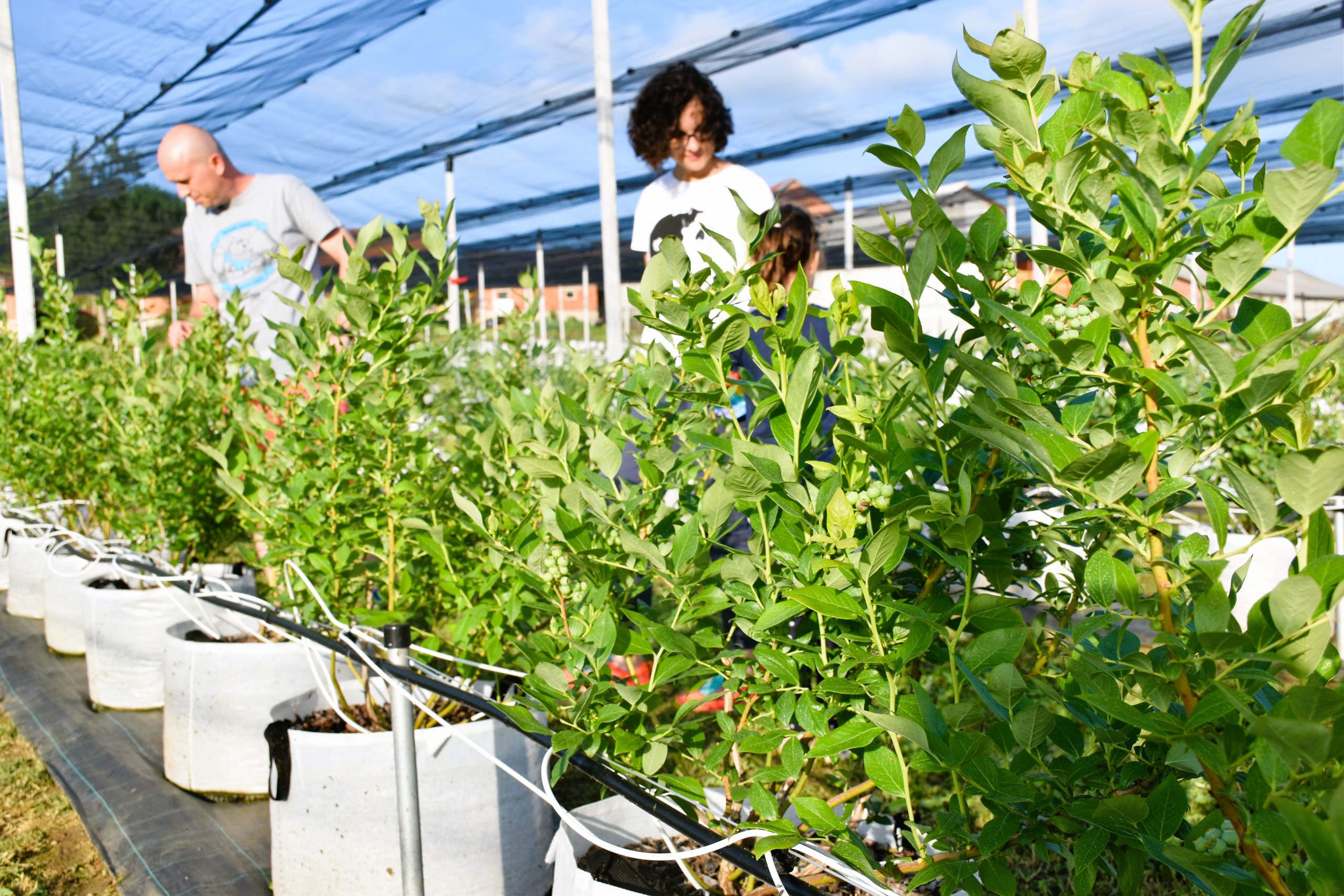 A Ružići se o svakoj od njih brinu s posebnom pažnjom. „Biljke su posađene u vreće sa supstratom jer im treba kisela zemlja lagane i rahle strukture, a to je lakše osigurati i kontrolirati u vrećama i teglama nego u tlu“, kaže Saša. Iako mu je poljoprivreda struka, svaku informaciju i savjet o uzgoju borovnica dodatno će proučiti i provjeriti. Zato su supstrat u kojem rastu biljke naručili iz Nizozemske i posebno je prilagođen sastavu vode, nadmorskoj visini i podneblju na kojem se nalazi plantaža. Razvukli su i sustav za opskrbu vodom koji svakoj sadnici donosi kap po kap, točno onoliko koliko joj treba kako bi se razvila u zdravu biljku bogatu plodom. Što se tiče tuče, od nje ne strahuju i spavaju mirno jer su razvukli mreže koje nasad štite i od ptica.