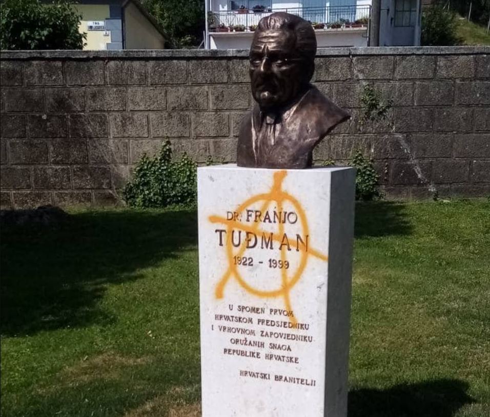 Kako se navodi u policijskom izvješću, “sumnja se da je osumnjičeni tijekom 21./22. lipnja, u Križevcima na Trgu bana Lackovića na spomeniku sprejom iscrtao anarhistički simbol, oštetivši vlasnika za više desetaka tisuća kuna.”