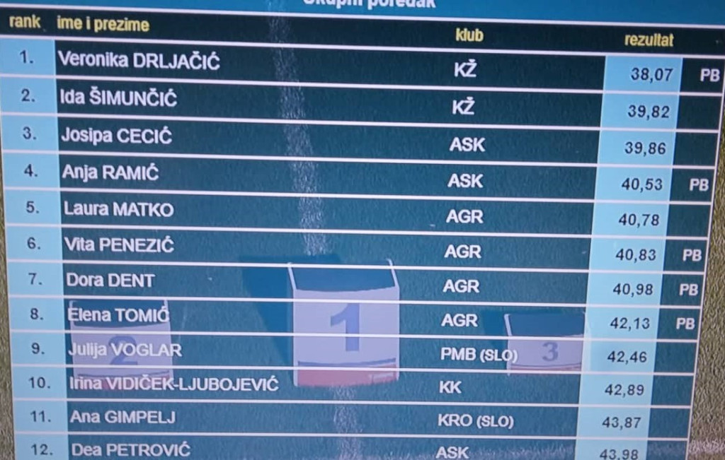 Križevačka atletičarka Veronika Drljačić (20) ostvarila je dvostruku pobjedu danas na međunarodnom mitingu u Karlovcu. Nakon pobjede i osobnog rekorda na 300 metara, uvjerljivo je pobijedila i u utrci na 100 metara s postignućem 12.13. Utrku na 300 metara istrčala je za 38.07 sekundi i poboljšala postignuće za 24 stotinke sekunde, a taj rezultat vrednovan je s 1060 bodova. Druga je u utrci bila Ida Šimunčić s rezultatom 39.82.