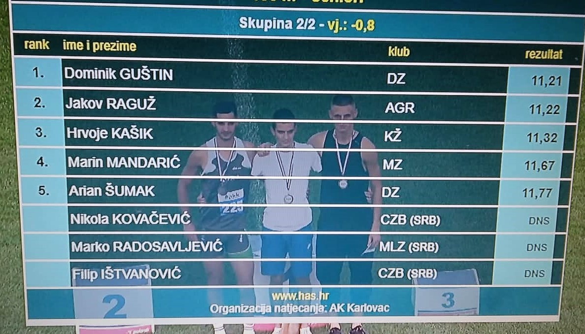 Sedamnaestogodišnji Hrvoje Kašik osvojio je treće mjesto u utrci na 100 metara s rezultatom 11.32. Veronika Drljačić i Ida Šimunčić nastupit će u nedjelju na zagrebačkom atletskom mitingu.
