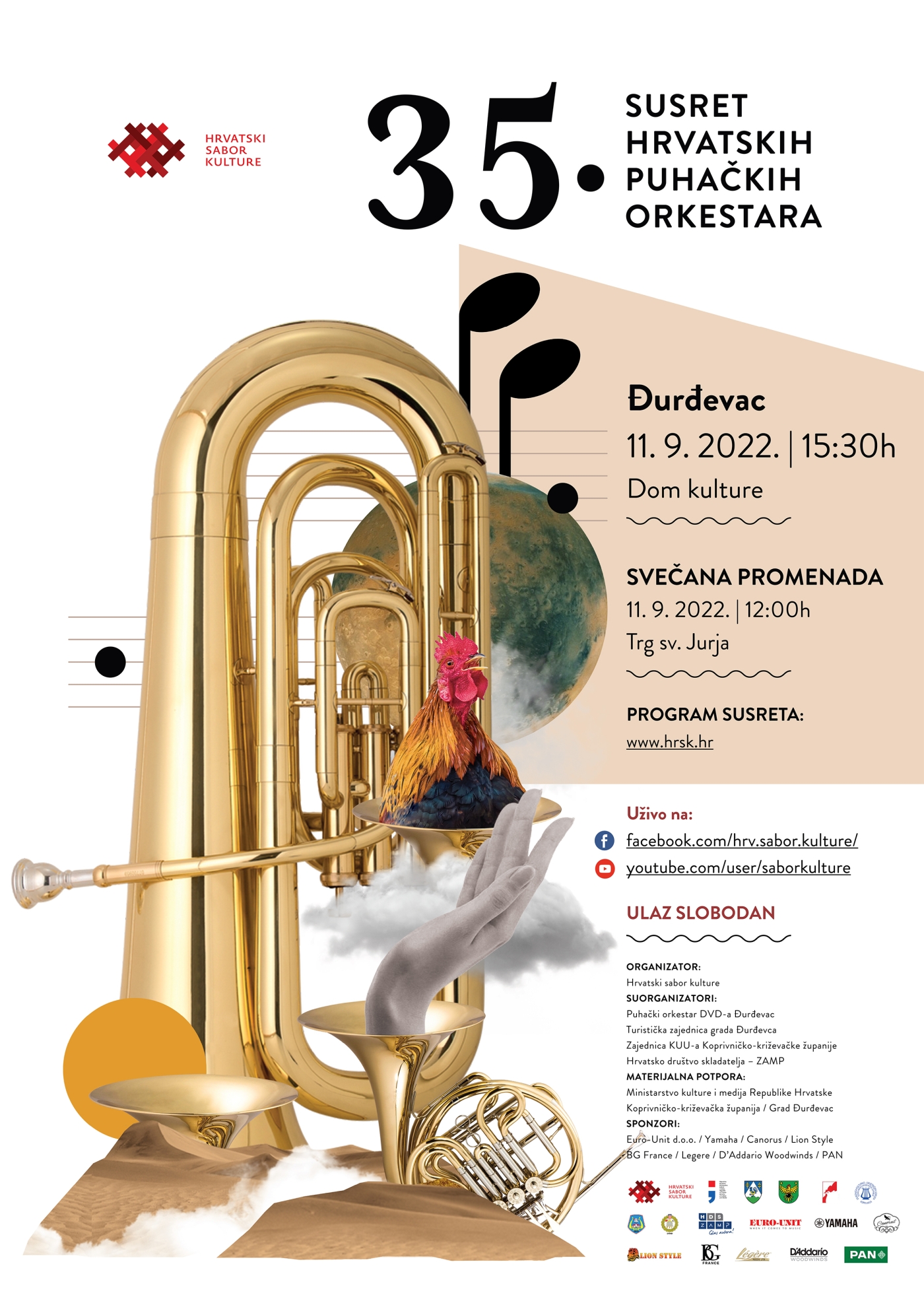 Susret hrvatskih puhačkih orkestara je u svojem 35. izdanju, s velikim brojem sudionika i kvalitetom glazbenog programa, u punom sjaju predstavio snagu kulturno-umjetničkog amaterizma kao važnog nositelja glazbene kulture. Program Susreta revijalno je započeo u 12 sati na Trgu sv. Jurja svečanom promenadom i zajedničkim muziciranjem orkestara, dok se natjecateljski dio programa održao u Domu kulture Đurđevac.