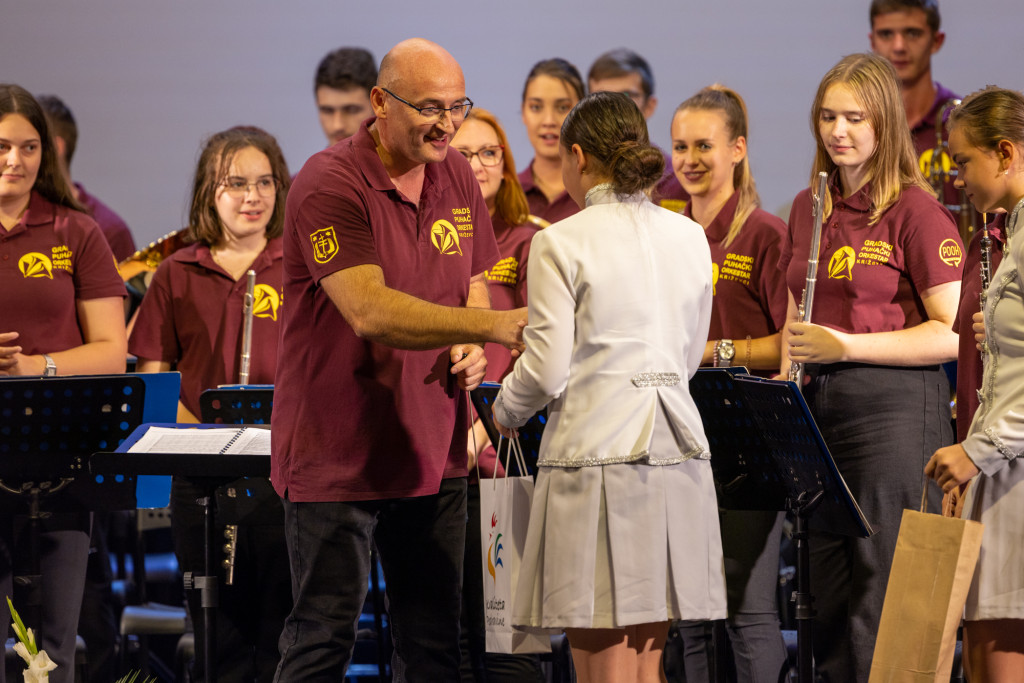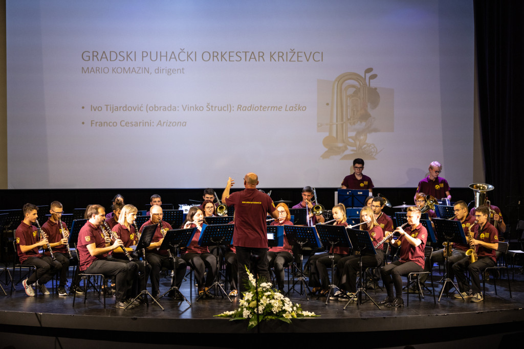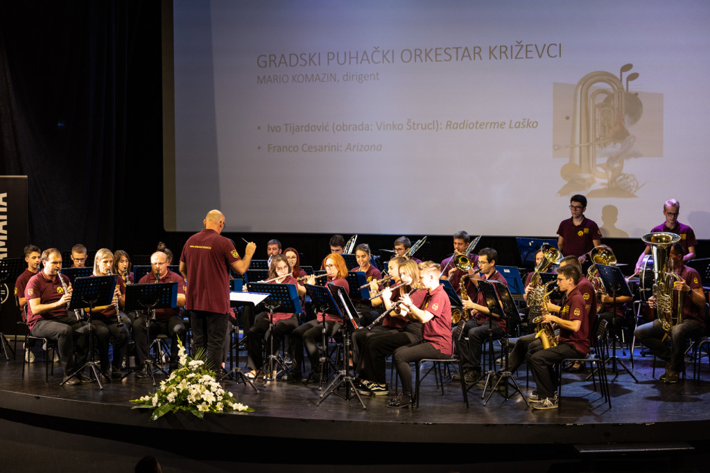 Kako smo sinoć izvijestili, Gradski puhački orkestar Križevci s dirigentom Marijom Komazinom osvojio je zlatnu plaketu s 90.88 bodova na jučer održanom 35. Susretu hrvatskih puhačkih orkestara, koji je u Đurđevcu okupio 12 najuspješnijih puhačkih orkestara iz devet hrvatskih županija s više od 420 glazbenika.