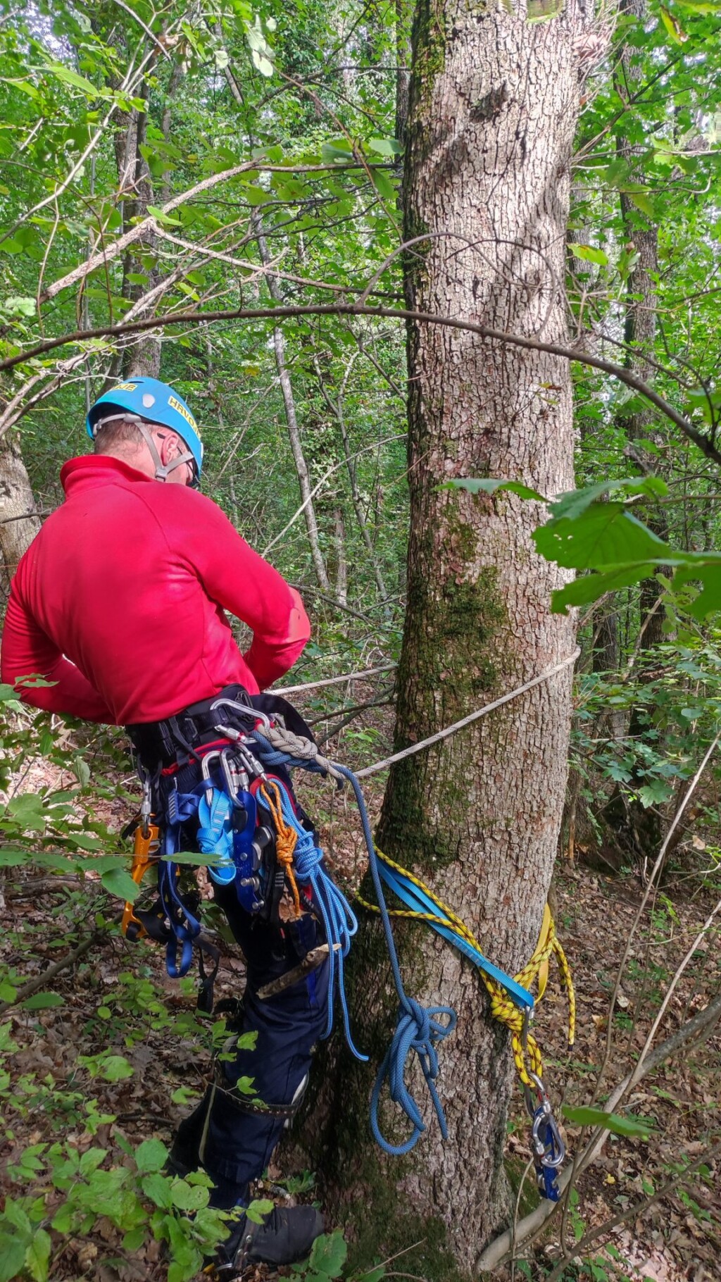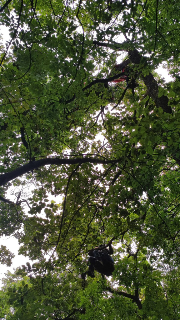Kako je HGSS izvijestio, na teren je izašlo šest spašavatelja koji su upućeni na lokaciju dobivenu lociranjem pozivatelja prilikom poziva na broj 112. Dolaskom na lokaciju odmah uočavaju krilo u krošnji stabla te unesrećenog na desetak metara visine od tla. Uz pomoć “penjača”, spašavatelj se penje na stablo, izrađuje sidrište pa se unesrećenog spušta na tlo.