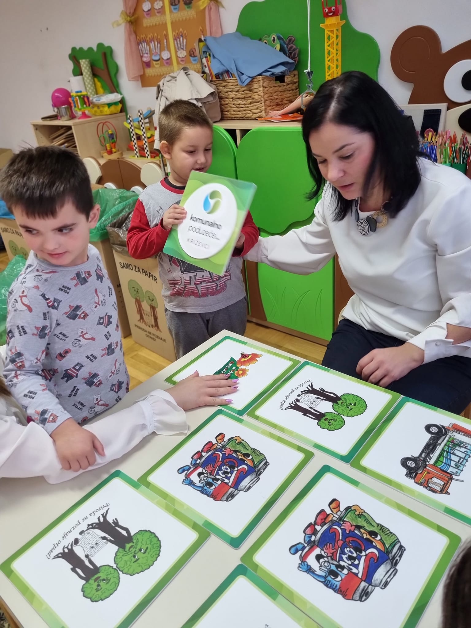 Da vrećica od bonbona i kora od banane ne idu u isti spremnik, učili su danas vrtićanci iz Centra za odgoj, obrazovanje i rehabilitaciju Križevci na eko radionici „Igrom do zelenih Križevaca“. Dijana Mijač Dretar i Nikolina Stipić iz Komunalnog poduzeća Križevci pokazale su im kakve sve vrste spremnika postoje, a djeca su, kroz zabavne i edukativne aktivnosti, naučila kako pravilno odvajati otpad te što nije dobro i zdravo za našu Zemlju.