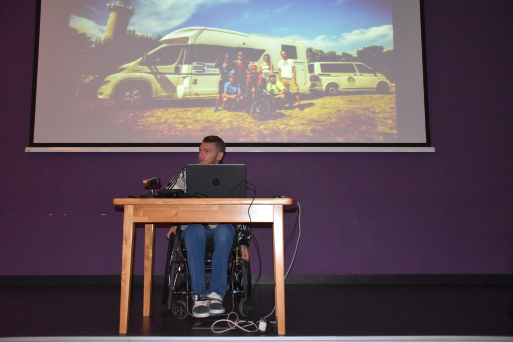 Slaven je tridesetšestogodišnjak iz Zagreba, putopisac i zaljubljenik u putovanja koji pomiče svoje granice otkad je, prije trinaest godina, skočio u more, slomio vratnu kralježnicu i završio u kolicima. Mjesecima nakon povratka iz bolnice gledao je prijatelje na fotografijama društvenih mreža kako se bave sportom i putuju. Posjetiteljima Pinklecfesta iskreno je ispričao kako je tad odlučio uživati u životu i izvući maksimum iz ovoga što mu je “ponuđeno”. Od tada se, uz pomoć prijatelja, uspeo na vrh planine u drevnom gradu Petri u Jordanu, posjetio Australiju, pustinju u Maroku, safari u Tanzaniji, ali htio je nešto napraviti sam, svojom snagom.