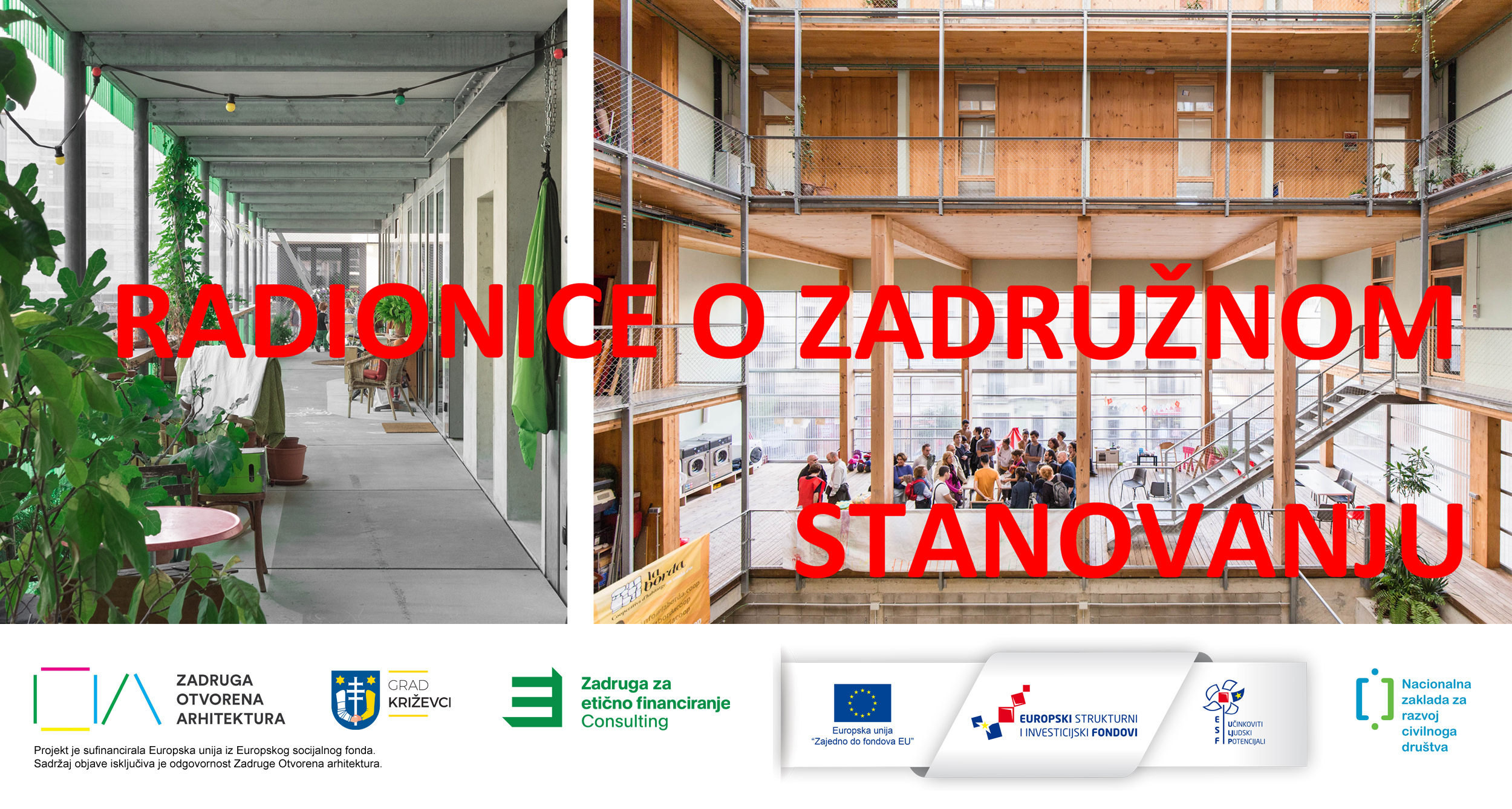 Zadruga Otvorena arhitektura, Grad Križevci i Zadruga za etično financiranje pozivamo sve građane i građanke koji žele sudjelovati u formiranju stambene zadruge u Križevcima i na povoljan i siguran način riješiti svoje stambeno pitanje, da se prijave na radionice o osnivanju stambenih zadruga. Osim potencijalnim budućim stanarima, namijenjene su i onima koji žele naučiti više o zadružnom stanovanju i funkcioniranja stambenih zadruga, bez obzira ne mjesto stanovanja.