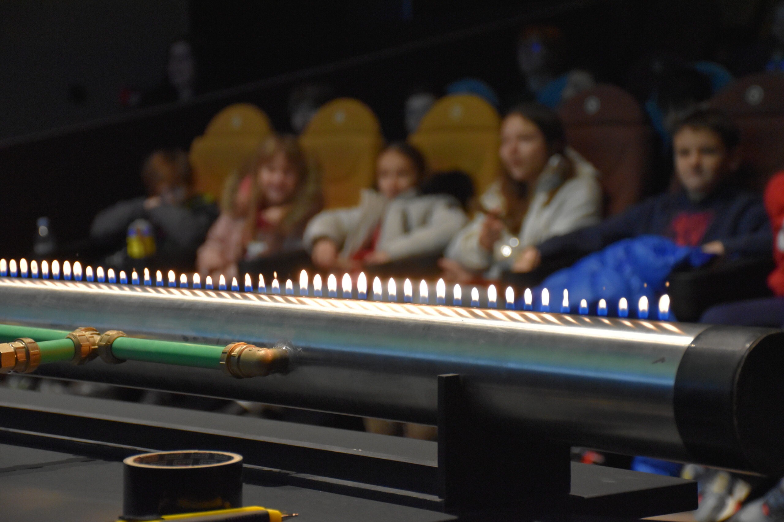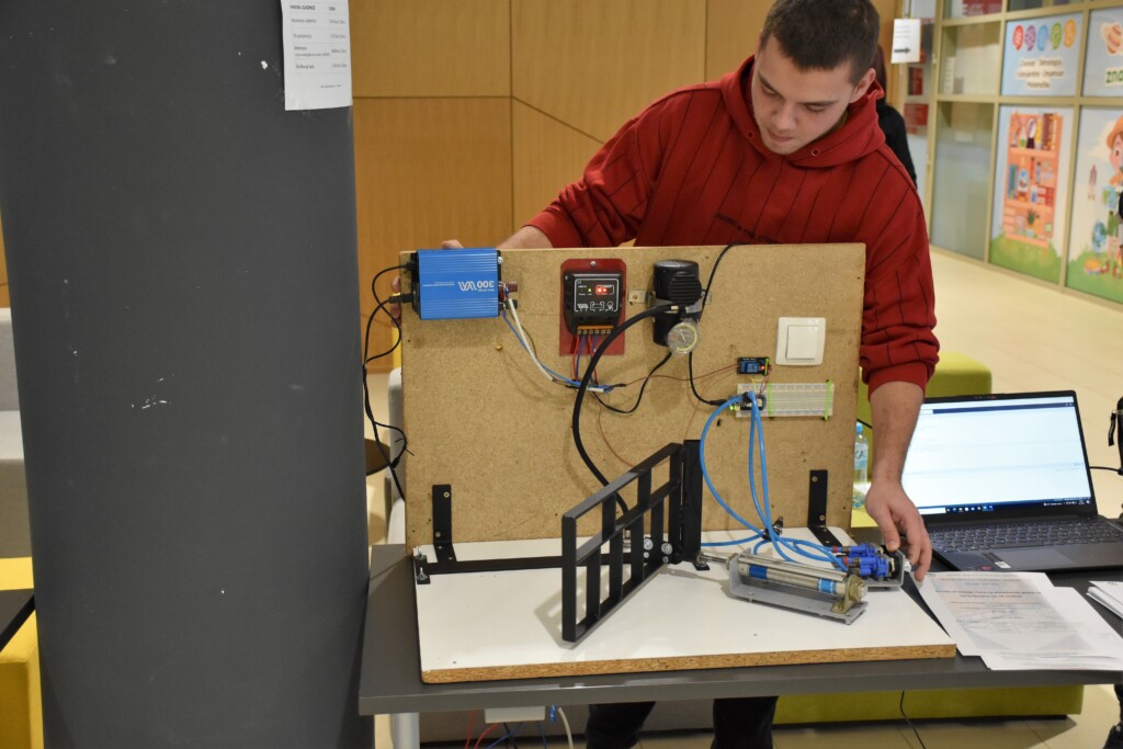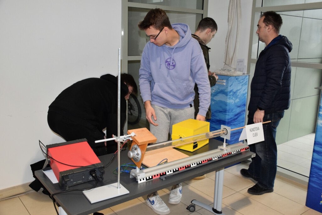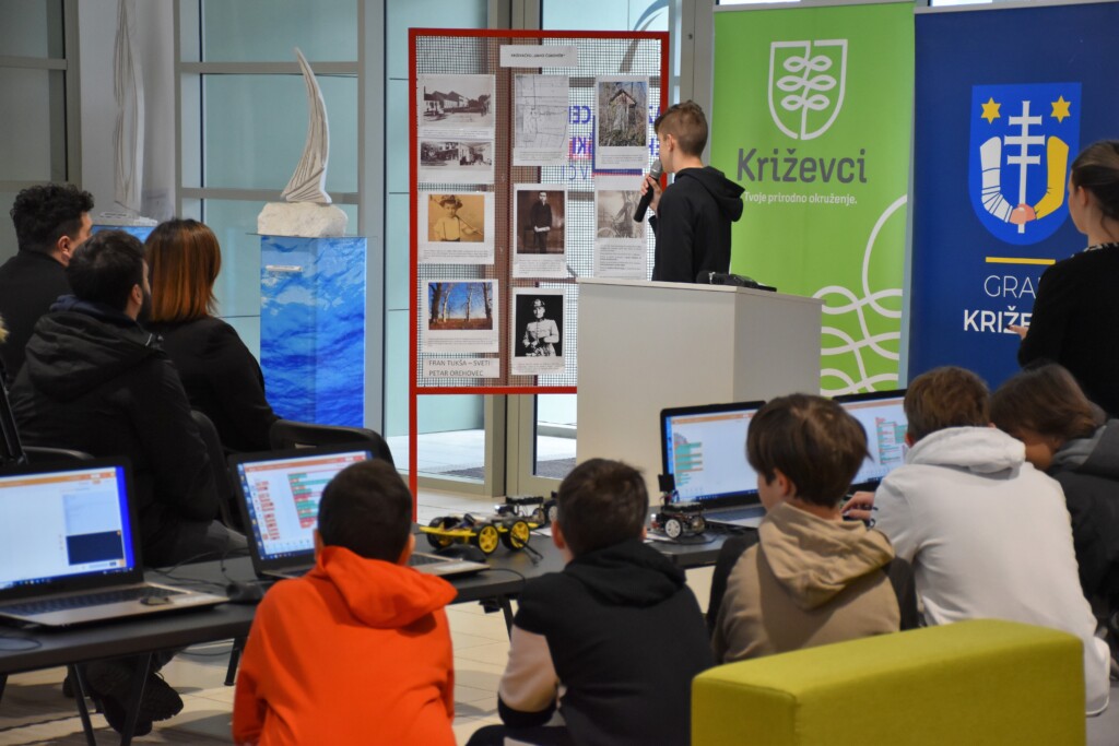 Učenici strojarskog usmjerenja Srednje škole “Ivan Seljanec” predstavili su vrata na pneumatski pogon s daljinskim upravljanjem, osnovnoškolci iz “Vladimira Nazora” pokazali su svoje projekte s micro:bitom, električno vozilo i robote s umjetnom inteligencijom, maturanti iz Gimnazije Ivana Zakmardija Dijankovečkog pokazali su kako pomoću Kundtove cijevi možemo vidjeti zvučne valove. Učenici iz OŠ “Vladimir Nazor” koji su na izložbu došli u pratnji svoje učiteljice Sonje Dominković, sa zanimanjem su pratili i predavanje udruge P.O.I.N.T. u kojem su naučili kakve veze imaju glazba i fizika – pomoću Rubenove cijevi kroz kombinaciju vatre i glazbe vidjeli su kako izgledaju zvučni valovi nekih pjesama te kako se, ovisno o frekvenciji zvuka, mijenja plamen. Najviše im se svidio Mozart.