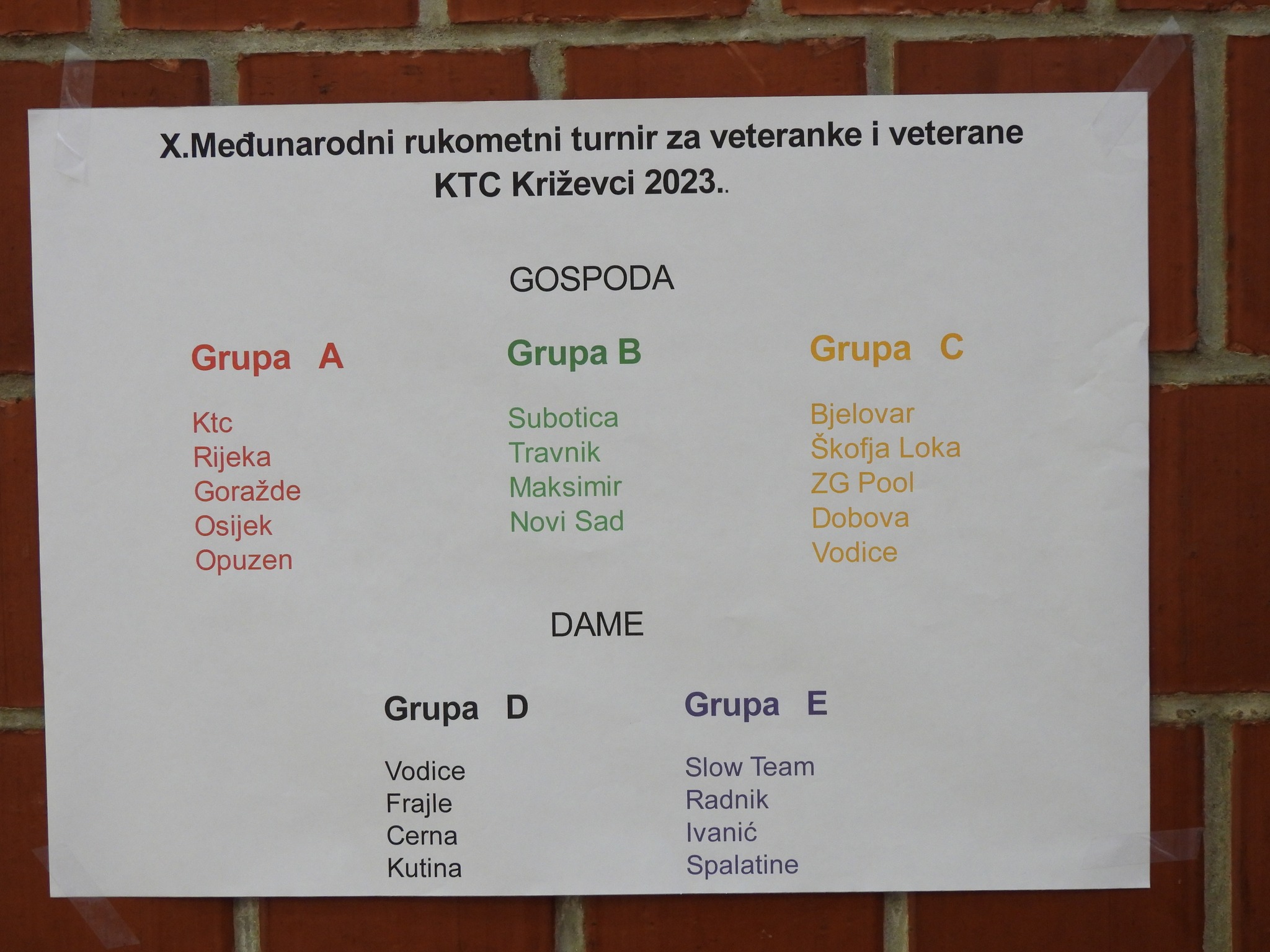 Započeo je X. Međunarodni rukometni turnir za veterane i veteranke u Križevcima na kojem će nastupiti četrnaest muških i osam ženskih veteranskih sastava iz Hrvatske, Bosne i Hercegovine, Slovenije i Srbije. Turnir organiziraju veterani rukometnog kluba KTC, a uz njih će nastupiti i veteranke ŽRK Radnik. Utakmice se igraju danas i sutra u dvorani OŠ Ljudevita Modeca u Potočkoj ulici, ulazak je slobodan, a podrška publike dobrodošla.