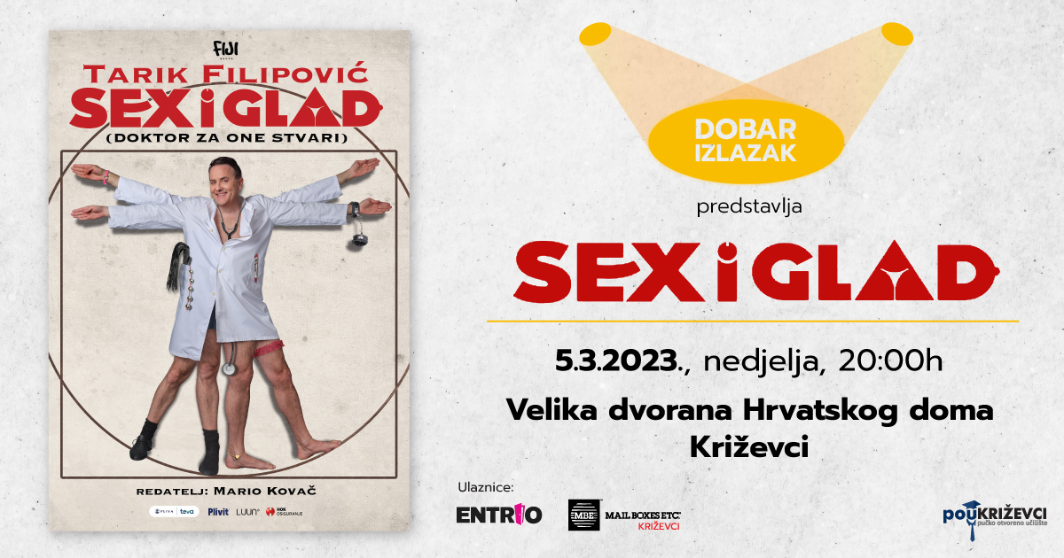 Doktor seksologije, profesor i playboy, kojeg je utjelovio omiljeni glumac Tarik Filipović, vodi gledatelje na uzbudljivi safari kroz prašumu pojmovlja iz područja ljudske seksualnosti. Koliko god živimo u hiperseksualiziranom dijelu svijeta, toliko je još uvijek ova tema mnogima u sferi tabua. “SEX & GLAD – Doktor za one stvari” je predstava koja služi upravo detabuiziranju tih područja ljudske prirode. Križevačka publika imat će priliku vidjeti ovu predstavu uživo 5. ožujka u Velikoj dvorani Hrvatskog doma.