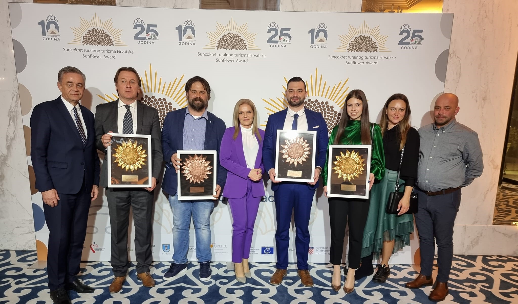 Križevčani Suzana i Renato Florenino dobili su prekjučer u Opatiji Zlatnu povelju koju im je, u sklopu nacionalne nagrade “Suncokret ruralnog turizma Hrvatske – Sunflower Award”, dodijelila Hrvatska udruga za turizam i ruralni razvoj “Klub članova Selo”. U sklopu projekta Suncokret ruralnog turizma Hrvatske jednom godišnje se ocjenjuju i predstavljaju tradicijski sadržaji, čuva izvornost i povezuju sudionici ruralnoga turizma, a dodjeljuje se u osam kategorija. Kuća za odmor obitelji Florenino, Florek˛& Florica na Kalniku, najbolja je u kategoriji “Tradicionalna ruralna domaćinstva”.