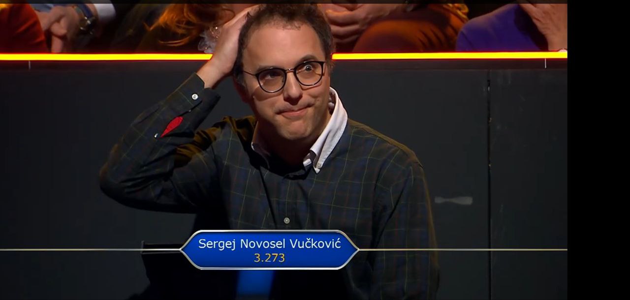 U večerašnjem izdanju popularnog kviza Tko želi biti milijunaš, na vruću stolicu preko puta Tarika Filipovića sjeo je Križevčanin sa zagrebačkom adresom Sergej Novosel Vučković.