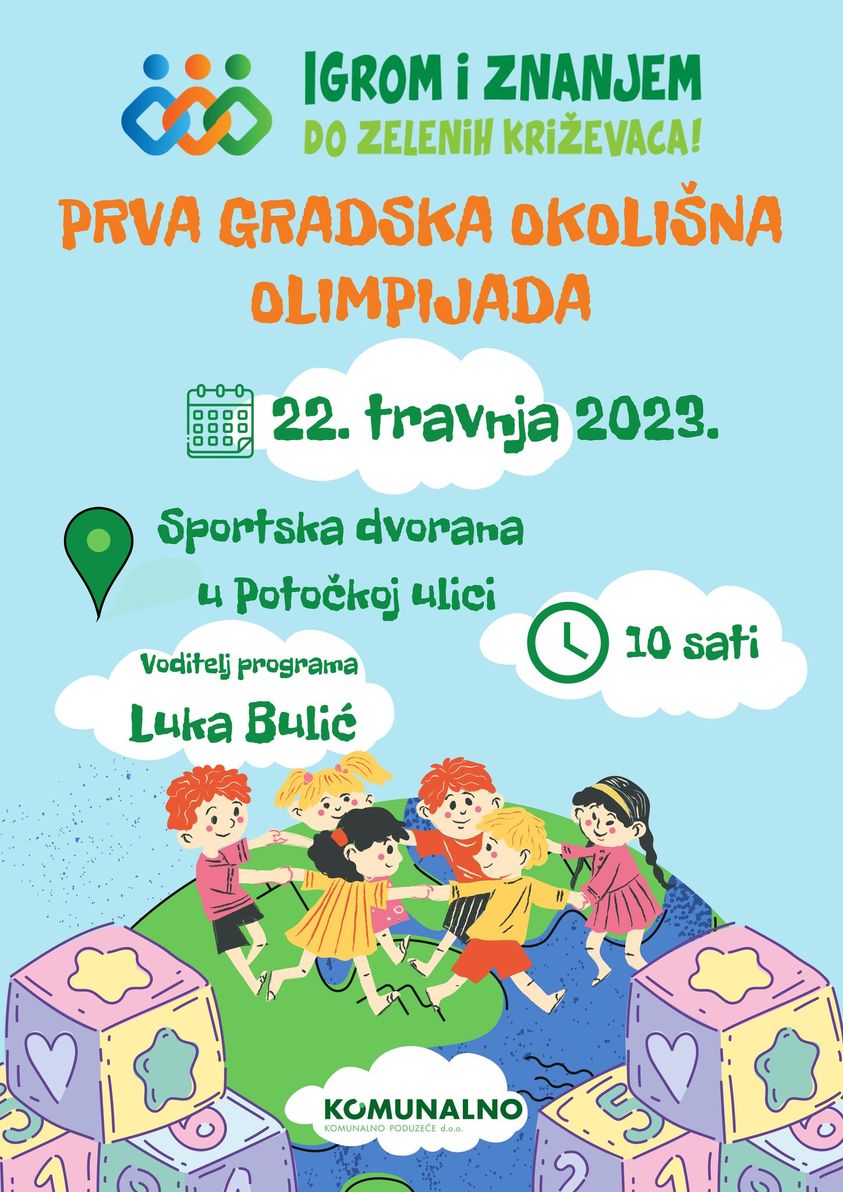 Finale prve Okolišne olimpijade je, nimalo slučajno, na Dan planeta Zemlje u subotu 22. travnja u sportskoj dvorani u Potočkoj ulici gdje će se učenici petih i šestih razreda, uz moto “igrom i znanjem do zelenih Križevaca” natjecati u različitim eko igrama. Voditelj ove edukativne i zabavne manifestacije je Luka Bulić, a razred koji pokaže najviše znanja, spretnosti i snalažljivosti osvojit će jednodnevni izlet u Baraćeve špilje i Speleon centar. Kako bi natjecateljima razbili tremu, ali i provjerili znaju li odrasli u koje spremnike se odlažu pojedine vrste otpada, organizatori su pripremili zanimljivo testiranje. U natjecanju će sudjelovati predstavnici Fonda za zaštitu okoliša i energetsku učinkovitost, župan sa suradnicima, gradonačelnik sa suradnicima, ravnatelji obje osnovne škole te direktor Komunalnog poduzeća sa suradnicima. S obzirom na to da Okolišnu olimpijadu podržava i Fond za zaštitu okoliša, moguće da priča izađe iz gradskih i županijski okvira.