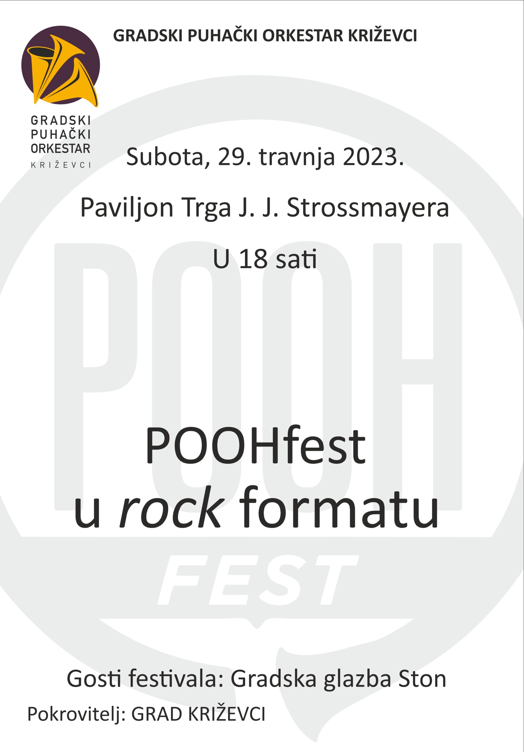 Među aktivnostima kojima se gradske udruge pridružuju proslavi Dana grada je večerašnji koncert Gradskog puhačkog orkestra u sklopu festivala POOHfesta. Koncert će se održati danas 29. travnja u 18 sati u paviljonu na Trgu J. J. Strossmayera. Na koncertu će uz Gradski puhački orkestar Križevci, nastupiti i Gradska glazba Ston, a predstavit će rock i zabavni repertoar.