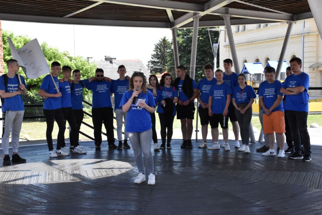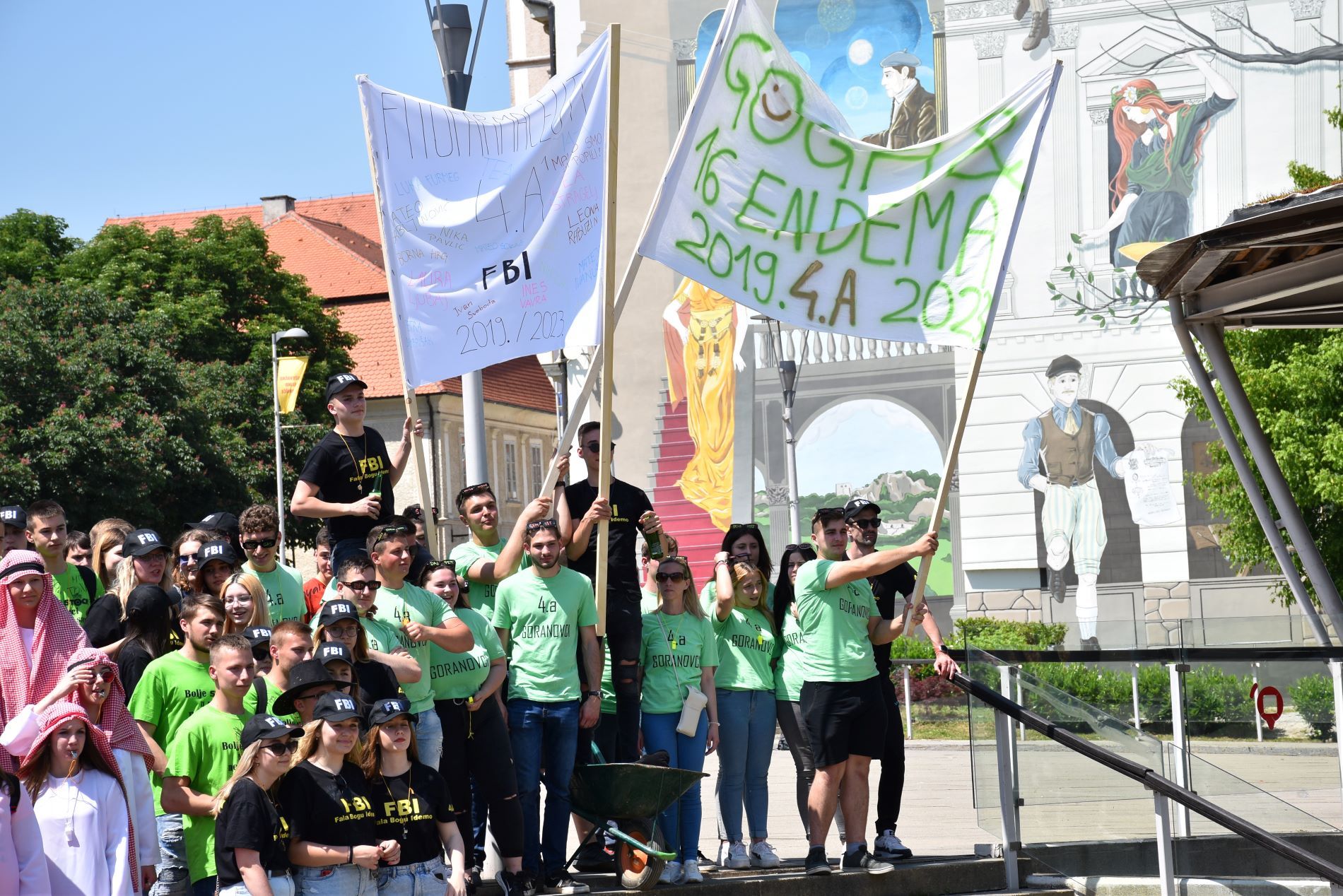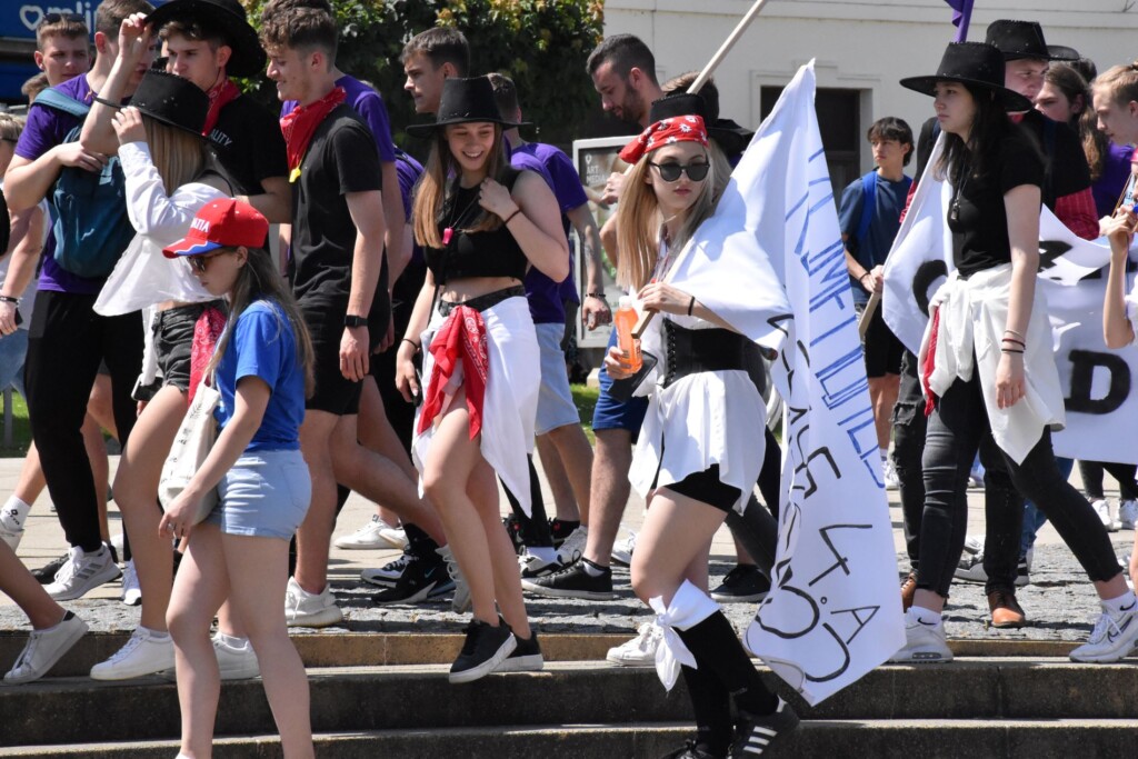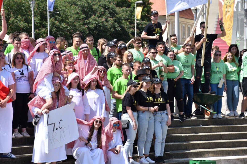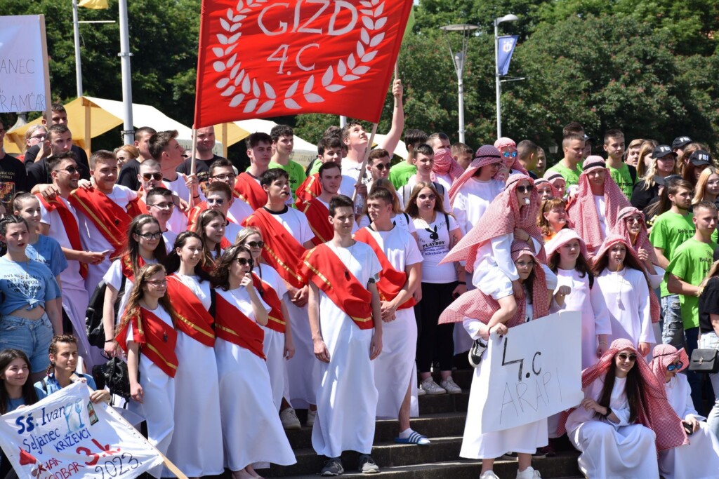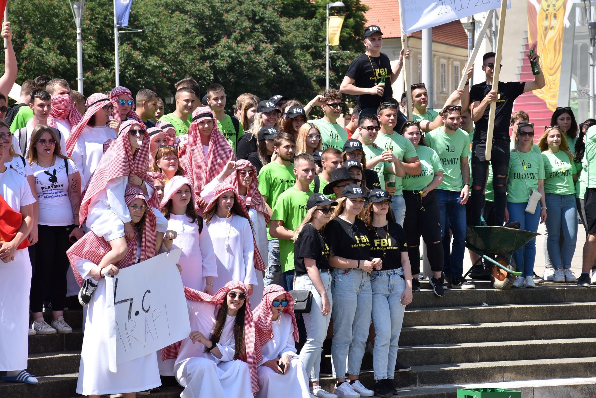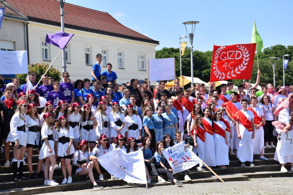 Vesela, šarena i bučna skupina križevačkih maturanata simbolično je danas na Strossmayerovom trgu završila još jednu stepenicu svoga obrazovanja. Predstavljajući se u paviljonu, svi razredi zahvalili su svojim profesorima, razrednicima, ravnateljima i pedagozima na trudu i strpljenju. Ravnatelji Ivan Peklić, Toni Svoboda, Gordana Juran Ratković i Branka Špoljar poželjeli su im sreću u budućem obrazovanju i pronalasku posla, po mogućnosti u Križevcima, a u ime Grada pozdravio ih je pročelnik za odgoj, obrazovanje i sport Sandro Novosel.