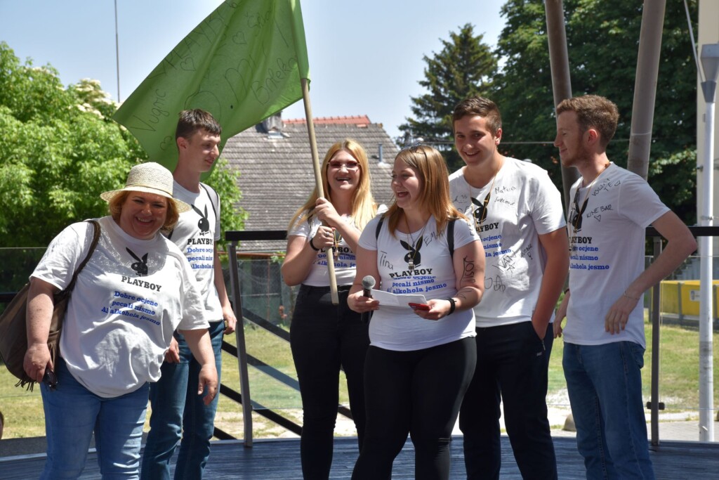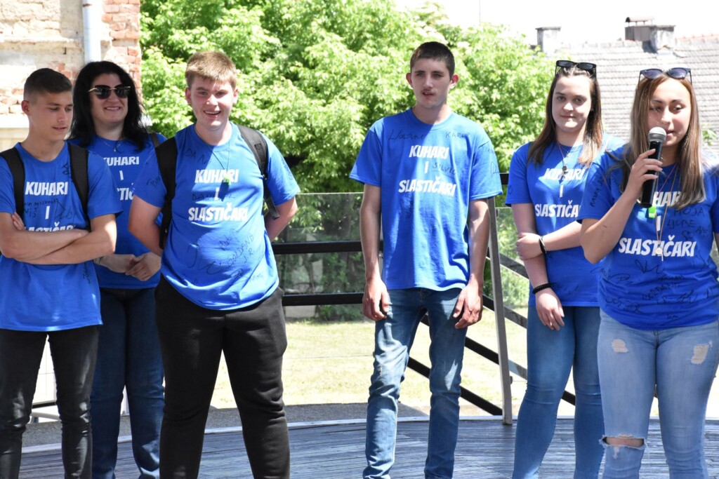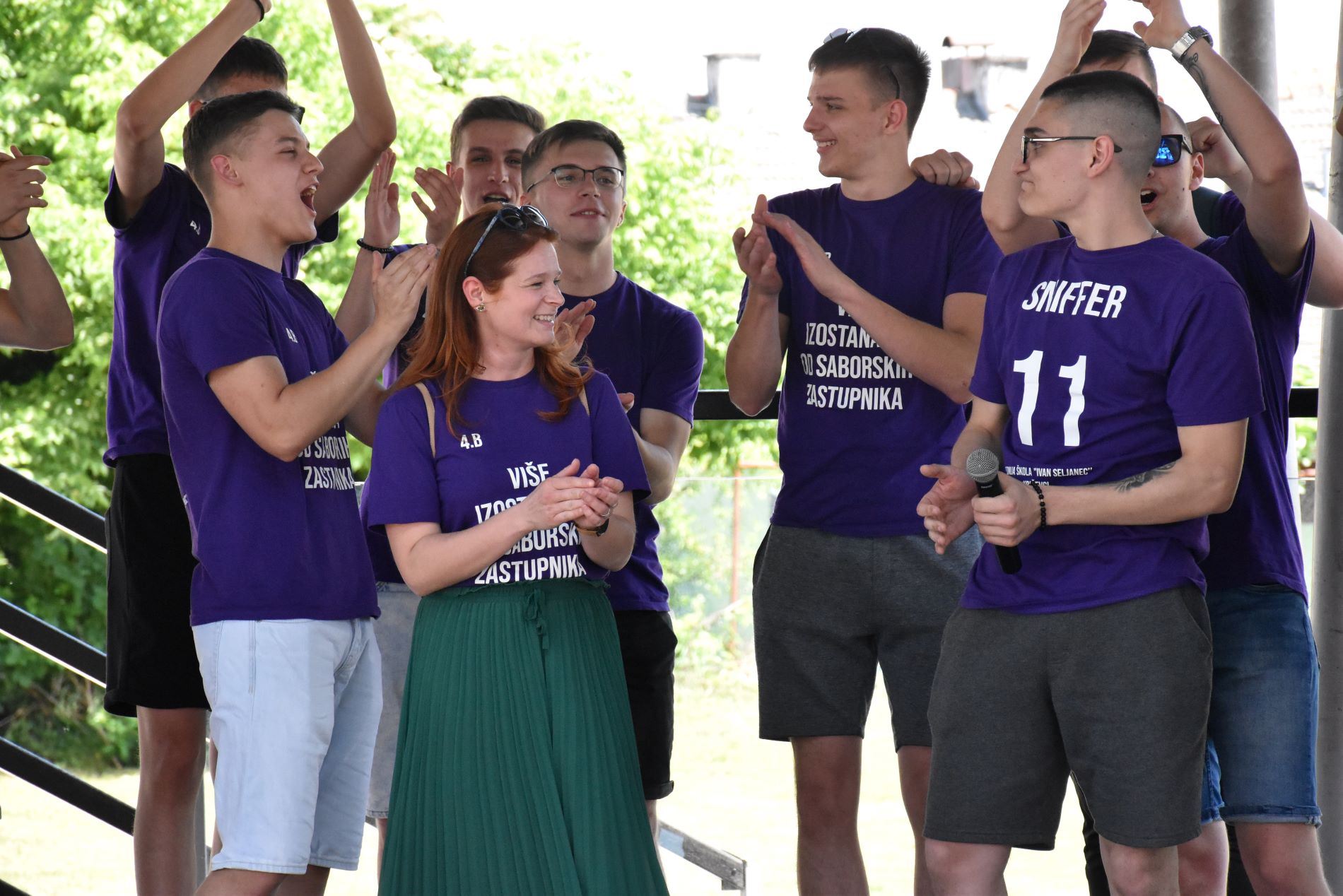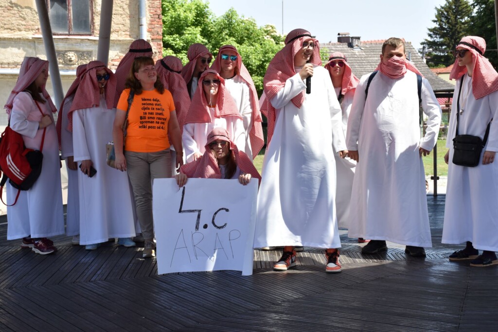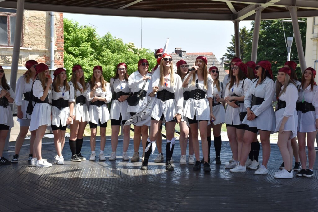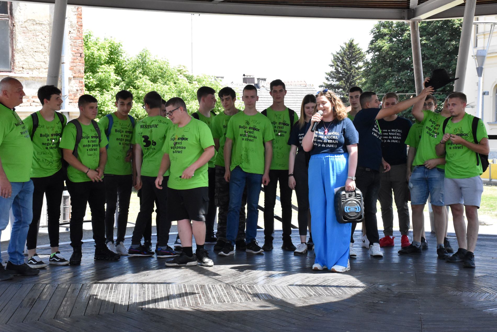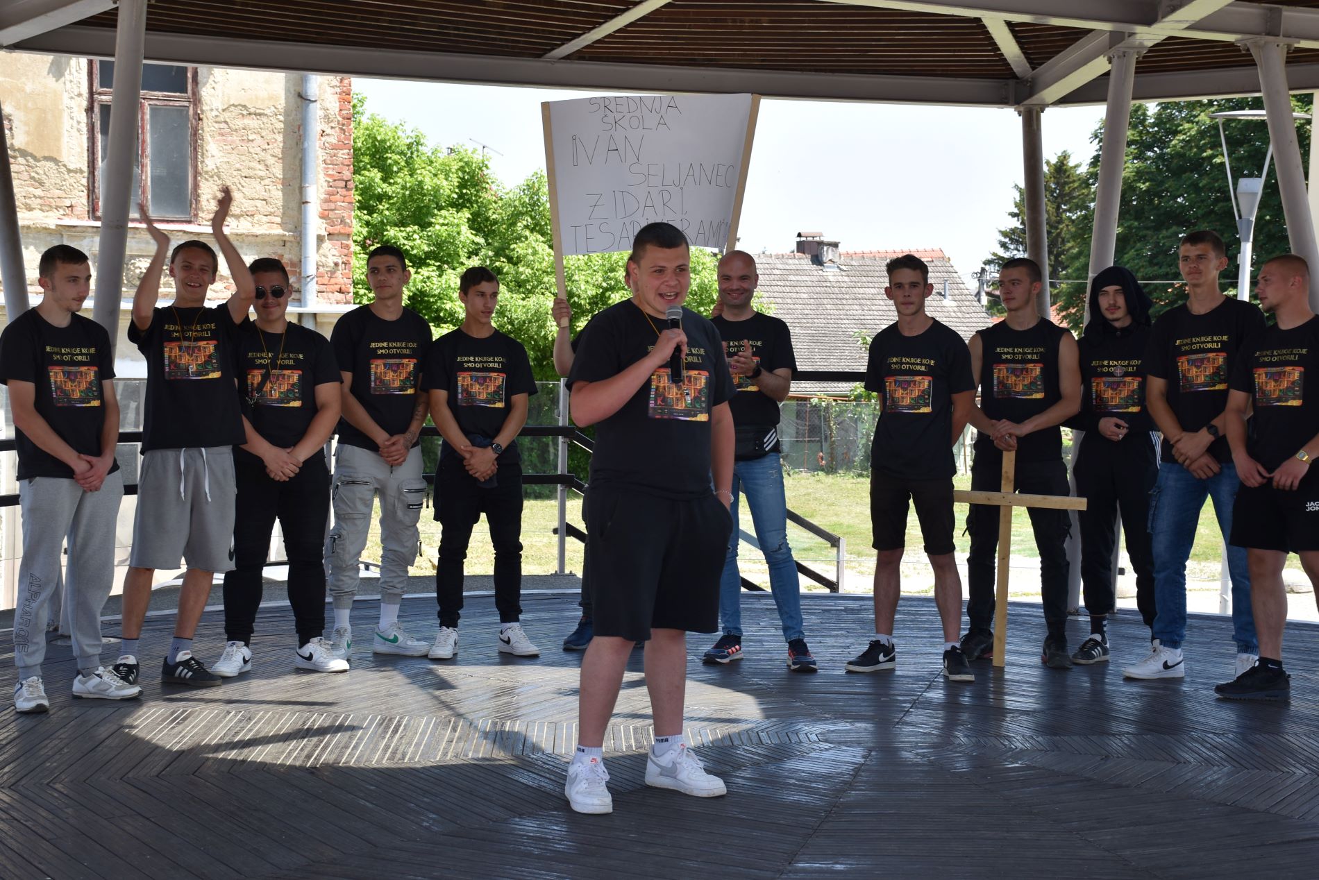 Vesela, šarena i bučna skupina križevačkih maturanata simbolično je danas na Strossmayerovom trgu završila još jednu stepenicu svoga obrazovanja. Predstavljajući se u paviljonu, svi razredi zahvalili su svojim profesorima, razrednicima, ravnateljima i pedagozima na trudu i strpljenju. Ravnatelji Ivan Peklić, Toni Svoboda, Gordana Juran Ratković i Branka Špoljar poželjeli su im sreću u budućem obrazovanju i pronalasku posla, po mogućnosti u Križevcima, a u ime Grada pozdravio ih je pročelnik za odgoj, obrazovanje i sport Sandro Novosel.