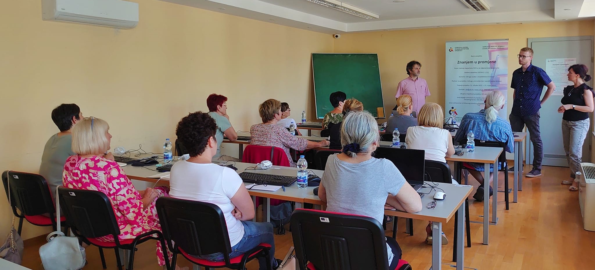 Da odrasli žele naučiti koristiti računala i prilagodit se svim promjenama i mogućnostima koje donose digitalne tehnologije, dokaz je petnaestero polaznika koji su jučer započeli obrazovanje na tečaju “Osnove rada na računalu”, koji se provodi u okviru projekta “Znanjem u promjene” čiji je nositelj Udruga osoba s invaliditetom Križevci. Polaznike će kroz pedeset sati praktičnog rada i predavanja voditi profesor Zoran Kovač, a na prvom satu pozdravili su ih voditelj projekta Luka Bratić i ravnateljica POU Križevci Željka Šunjić.