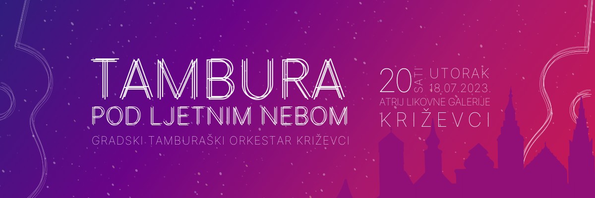 Gradski tamburaški orkestar Križevci poziva na cjelovečernji koncert pod nazivom „Tambura pod ljetnim nebom“, koji će se održati u utorak, 18. srpnja 2023. godine u 20 sati u atriju Likovne galerije Gradskog muzeja Križevci, na Trgu Antuna Nemčića 6/I. Događaj se organizira u sklopu manifestacije Križevačka ljetna špica u organizaciji Grada Križevaca.