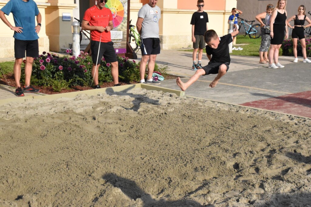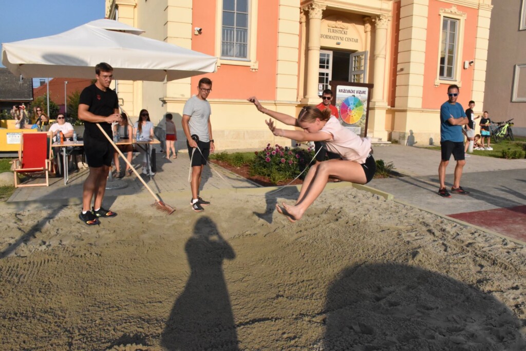 U kategoriji djevojčica od 5. do 8. razreda napeto je bilo do samog kraja. Od skoka do skoka na vrhu su se izmjenjivale Klara Rađa i Olja Jelen, naposlijetku je pobijedila Klara s preskočenih 3.80 m, srebrna je Olja s 3.66 m, a brončana Mila Jurić koja je preskočila 3.19 m. Još su skakale Kiara Koprić, Ina Šoronda i Melania Šamec. Među dječacima viših razreda najdalje je skočio Petar Kuzmić 4.48 m i postavio rekord skakališta na gradskoj plaži. Drugi je bio Gabriel Furmeg s 3.71 m, a treći Dominik Sokač s 3.36 m. Još je skakao i Marko Lugomer. Natjecanje je organizirala Škola trčanja i nordijskog hodanja AK Križevci.