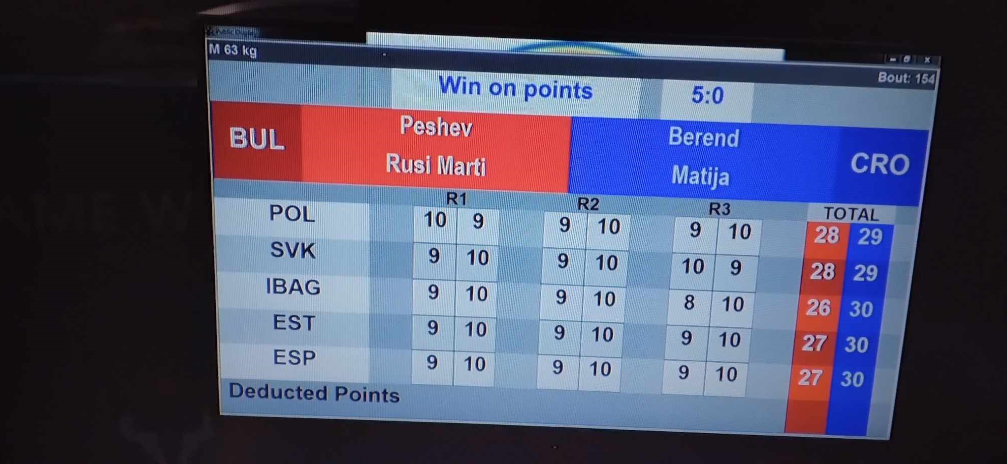 Iznimno daroviti križevački boksač Matija Berend uvjerljivo je izborio četvrtfinale poluvelter kategorije na Europskom juniorskom prvenstvu u Rumunjskoj. U osmini finala pobijedio je s čistih 5:0 bugarskog boksača Pesheva i ostvario vrijedno postignuće te će se uključiti u borbu za odličje na juniorskoj europskoj boksačkoj smotri. Njegov trener u BK Ronin je Hrvoje Pečarić koji, doduše, nije s njim uživo u Ploeistiju, ali je, naravno, stalno u kontaktu. Čestitke Berendu i treneru Pečariću, a s kojom umješnošću Matija boksa vjerujemo da može itekako daleko dogurati na Europskom prvenstvu.