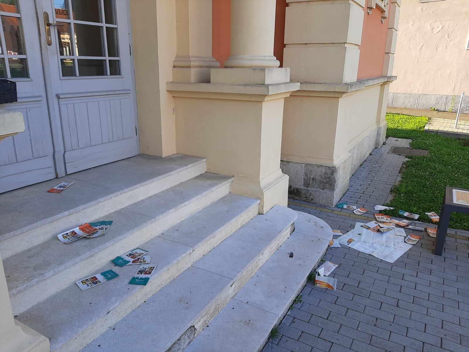 Netko već danima radi nered ispred Turističkog informativnog centra na Strossmayerovom trgu razbacujući letke, na što je upozorila direktorica Turističke zajednice Olinka Gjigaš jer je promotivni materijal na čiji su tisak potrošili novac, sad neupotrebljiv završio u smeću. Samo ovaj tjedan, tri jutra ih je dočekala hrpa letaka.