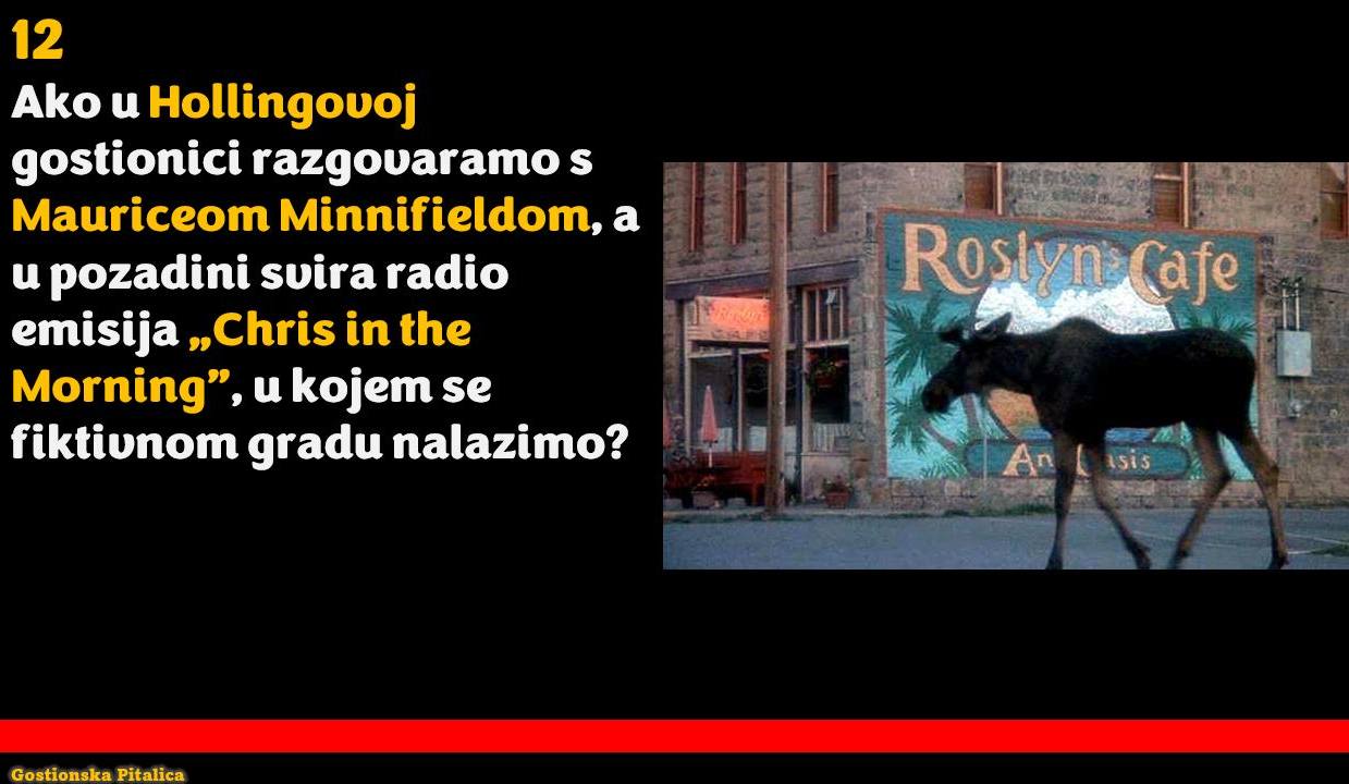 S krajem sezone godišnjih odmora počinje nova sezona „kviziranja“ i otvorit će je novi “zabavno-edukativni spektakl“ nazvan Gostionska Pitalica. Križevački kvizomani novu igru mogu zaigrati u klubu „Latino“ u Križevcima 1. rujna s početkom u 20 sati, a planirano je da im se znanje provjerava redovito, svaka dva tjedna. Organizator i sastavljač pitanja je Tomislav Tkalec, poznati križevački kvizaš s dugogodišnjim iskustvom na ovakvim timskim natjecanjima u znanju iz različitih područja. Ekipe mogu imati od tri do pet članova, a zajedno će odgovarati na sedamdesetak pitanja, poput ovoga o jednom od najpoznatijih televizijskih kult-klasika čija radnja se događa u izmišljenom gradu koji prihvaća svakoga i ne osuđuje nikoga.