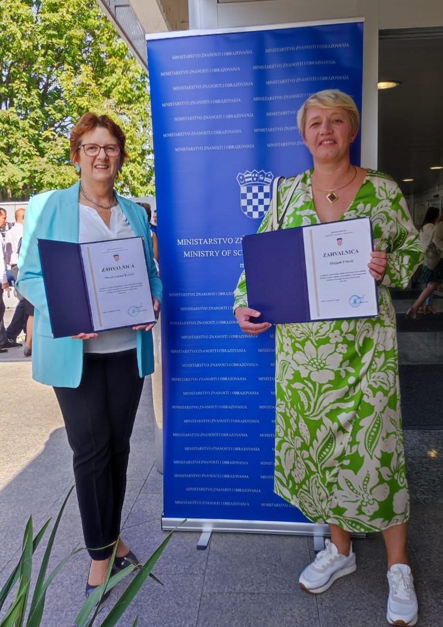 Križevačke nastavnice Marjana Fržović, Maja Zegnal Koretić, Martina Valec Rebić, Sandra Poštić, Tamara Vrhovec i Stojanka Lesički dobile su danas, na Svjetski dan učitelja, nagradu Ministarstva znanosti i obrazovanja koju im je uručio ministar Radovan Fuchs na svečanosti u Kongresnoj dvorani Zagrebačkog velesajma. Nagrade se dodjeljuju na temelju Pravilnika o nagrađivanju učitelja, nastavnika, stručnih suradnika i ravnatelja u osnovnim i srednjim školama te učeničkim domovima, a nakon procjene povjerenstva za nagrađivanje. Ove godine odabrano je 505 najuspješnijih u školskoj godini 2022./2023. koji su nagrađeni novčanim iznosom od 1.327 eura bruto.