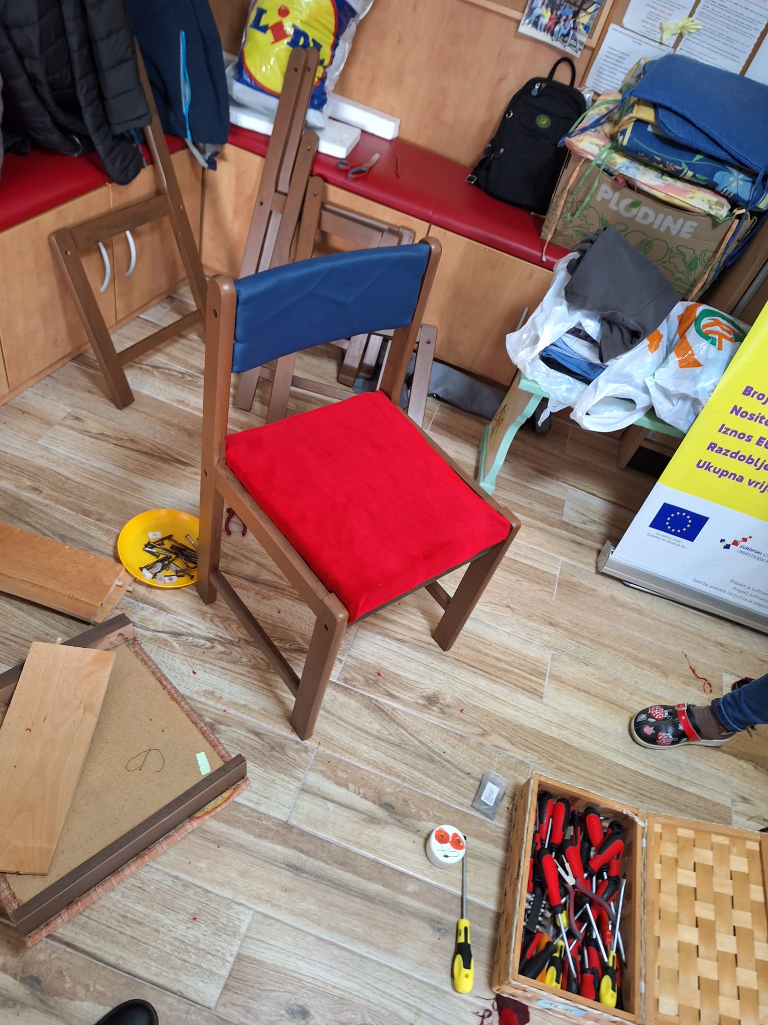 U sjedištu Udruge osoba s intelektualnim teškoćama i njihovih obitelji „Maslačak“ Križevci u ponedjeljak 13. studenoga 2023. održana je radionica tapeciranja rabljenog namještaja u sklopu EU projekta RUKe (Recikliram, Učim, Kreiram).