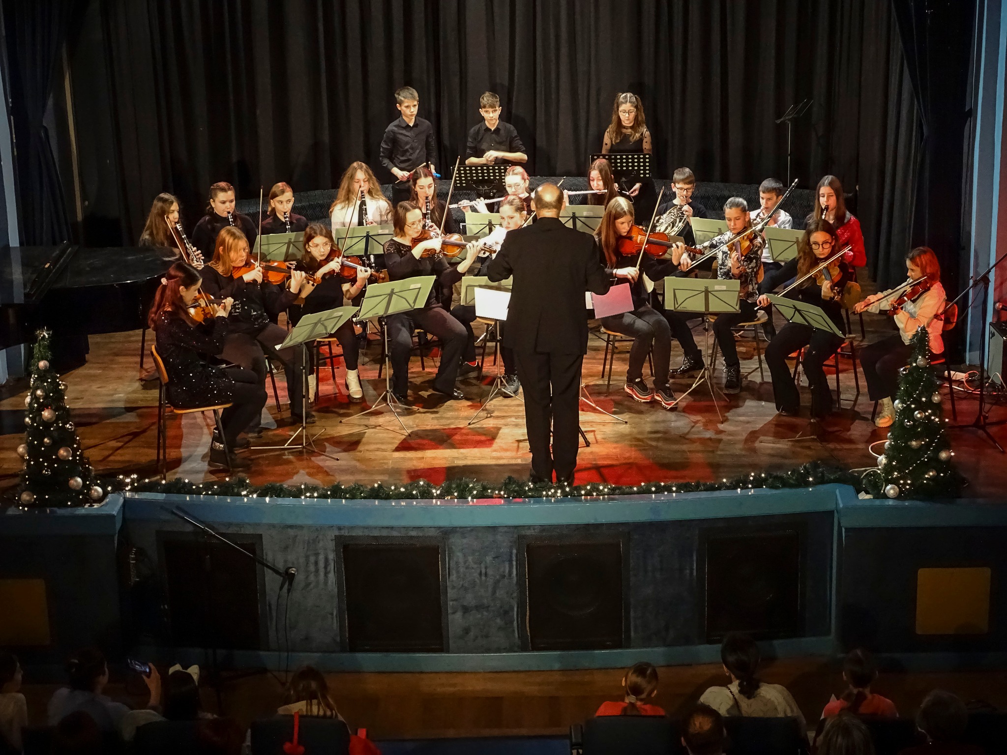 Učenici i nastavnici Glazbene škole Alberta Štrige tematskim su koncertom u četvrtak u velikoj dvorani Hrvatskoga doma oduševili sugrađane i poželjeli im sretne božićne blagdane. U programu su sudjelovali dueti i trija puhača, gudača i klavirista, zbor osnovne škole, komorni sastav tambura, učenice solo pjevanja, kvartet gitara s udaraljkašem. U srednjoškolskom zboru pjevali su i nastavnici, a dirigirale učenice, svirali su profesori tambure i udaraljki, a prigodni program izveli su harmonikaški, simfonijski i tamburaški orkestar.